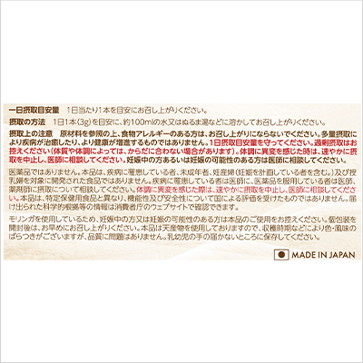 1日1本を目安に、約100mlの水又はぬるま湯などに溶かしてお召し上がりください。