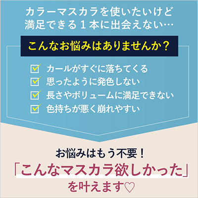 コンセプトやパッケージデザイン、カラーに至る細部にまでこだわり、日本人がマスカラに求める理想を反映した、渾身のマスカラです。(※無重力のように軽く、カールをキープするイメージ)