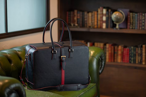 フライトバッグを連想するような大きなフラップとJALカラーの赤をさりげなくあしらったオリジナルバッグ。