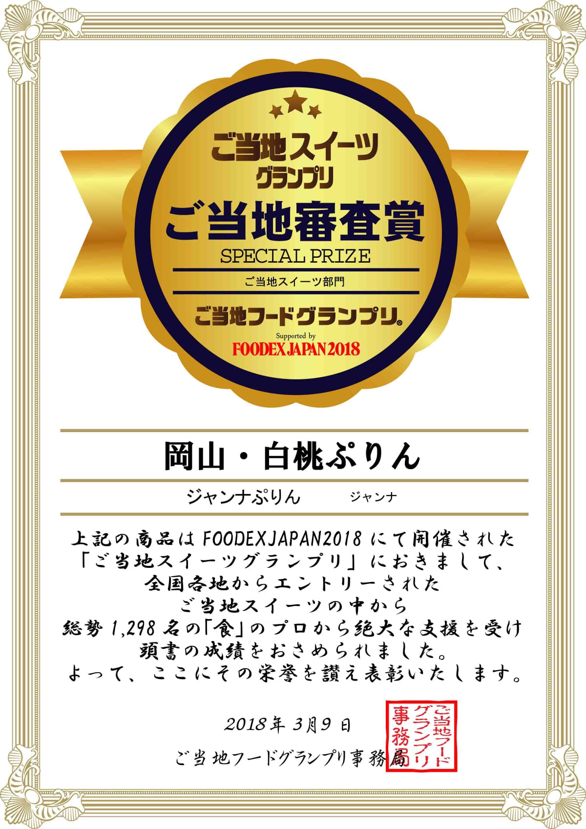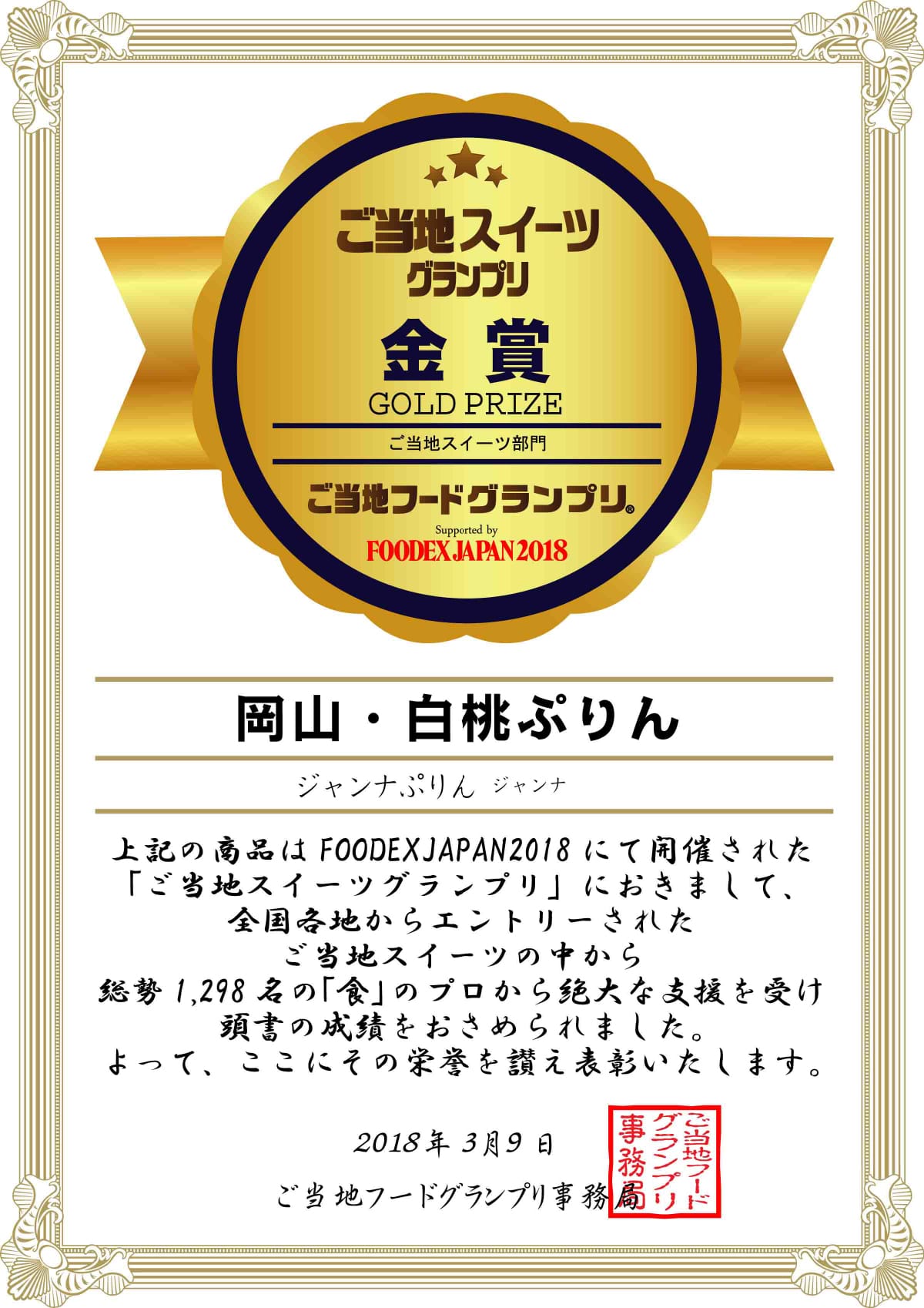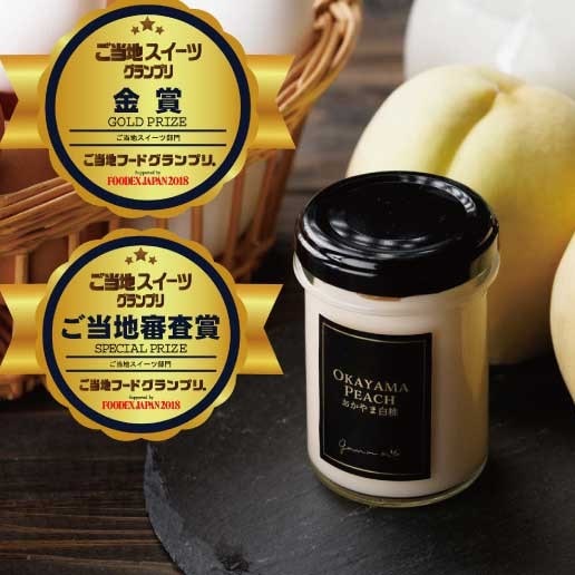 【おかやま白桃プリン】岡山産白桃がたっぷり入ったまるで桃を食べているかのように瑞々しい爽やかなジューシなプリン。平成30年 ”食のプロが集まる、アジア最大級の食の展示会「FOODEX JAPAN2018」にて行われた「ご当地スイーツグランプリ」において「金賞」と「ご当地審査員賞」を受賞。【マスカットプリン】「果物の女王」と呼ばれる、マスカット・オブ・アレキサンドリアを用いた上品な味わいを、そのままプリンに仕上げたジュレの様な味わいがやみつきになる逸品。