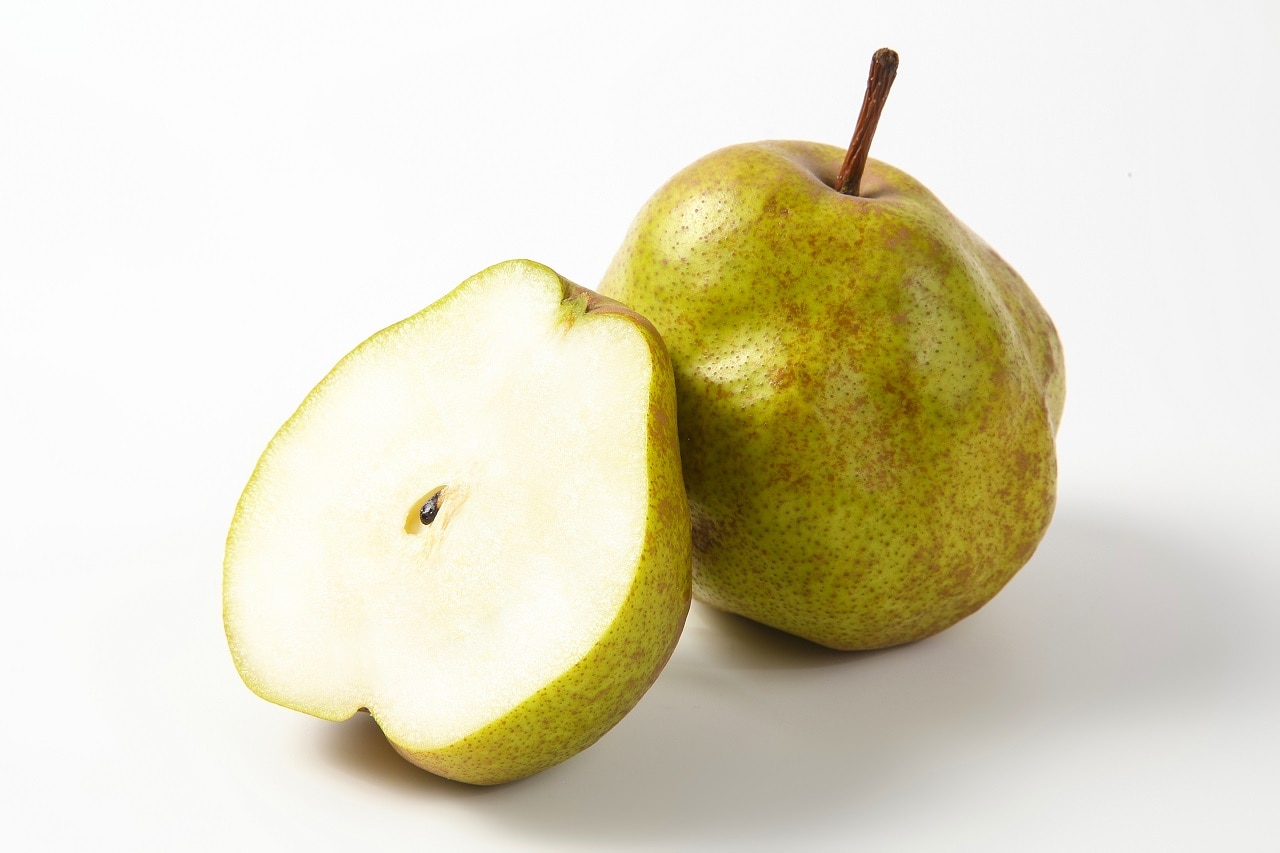 食べ頃のラ・フランスは切り込みを入れるとジューシーな果汁が溢れ出します。