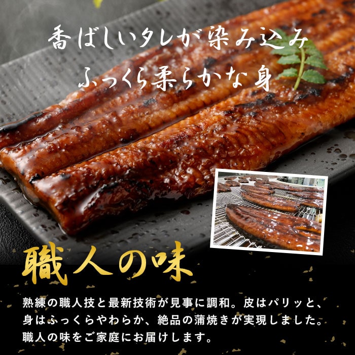 鹿児島県産の鰻を皮はパリッと、身はふっくらに秘伝のタレで香ばしく焼き上げました。 焼きたての美味しさをそのまま真空にした、食べごたえのある「うなぎ蒲焼」です。美味しいうなぎが育つ秘訣は、飲料水にも適合するほどのミネラル豊富な天然水のなかで、健康で元気なうなぎが育つ環境にあります。製造工場では食品の安全保障の為の国際的な基準をクリアする「HACCP認定工場」で徹底した品質管理・衛生管理のもと、うなぎ蒲焼きは製造されていますので、安心安全なうなぎをお楽しみいただけます。※うなぎは個体差があり内容量に若干差がございます。