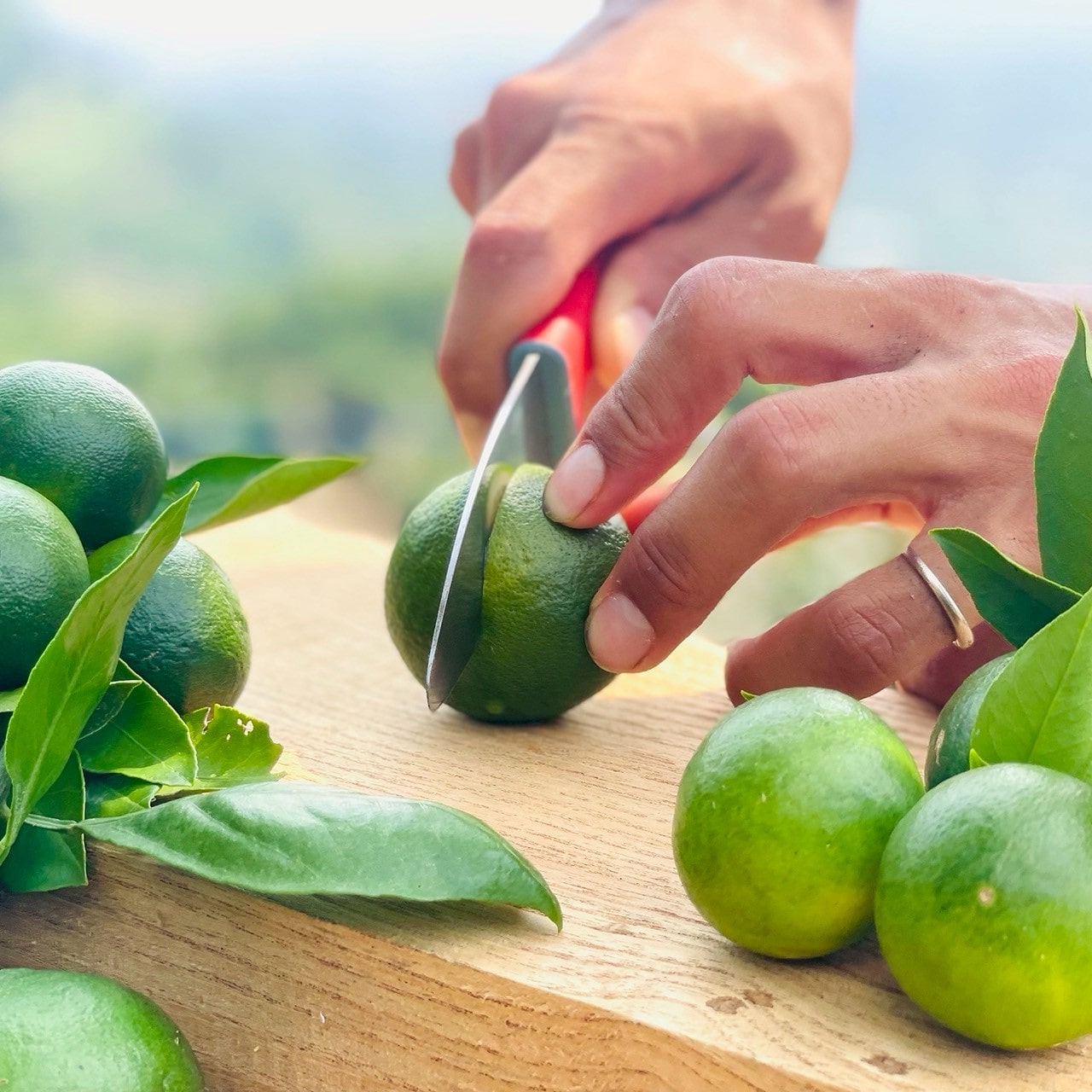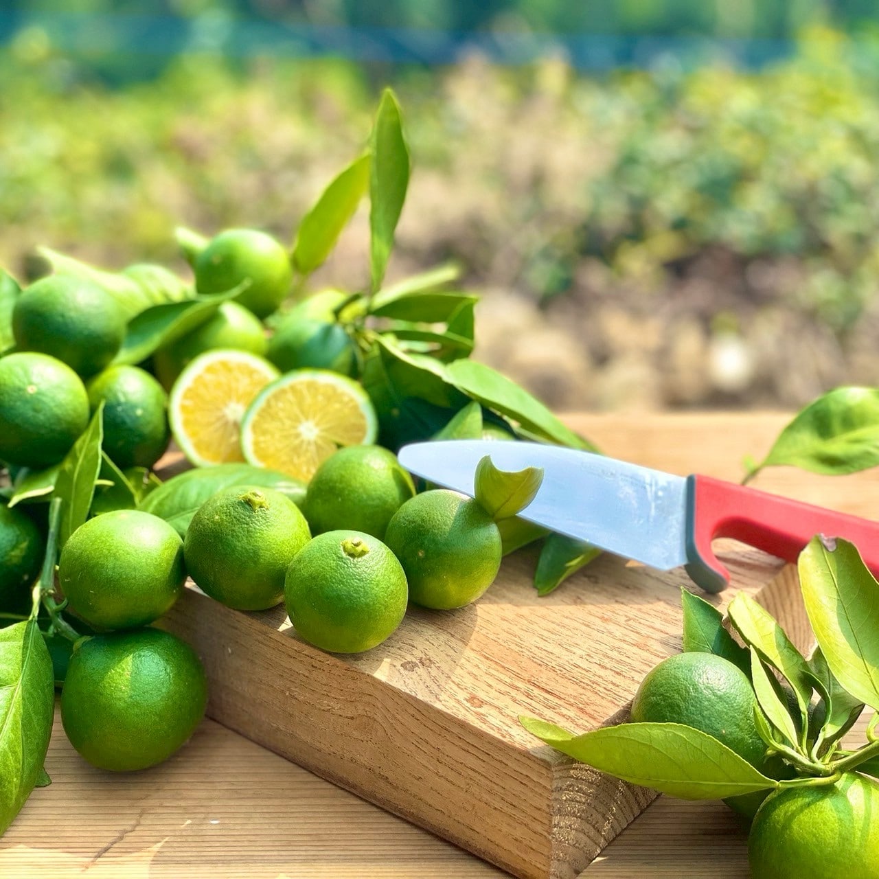 オレンジ色になる完熟前の貴重な青みかんを搾汁。ただ酸っぱいだけでなく、濃く深い甘さも感じるエキスとなっています。