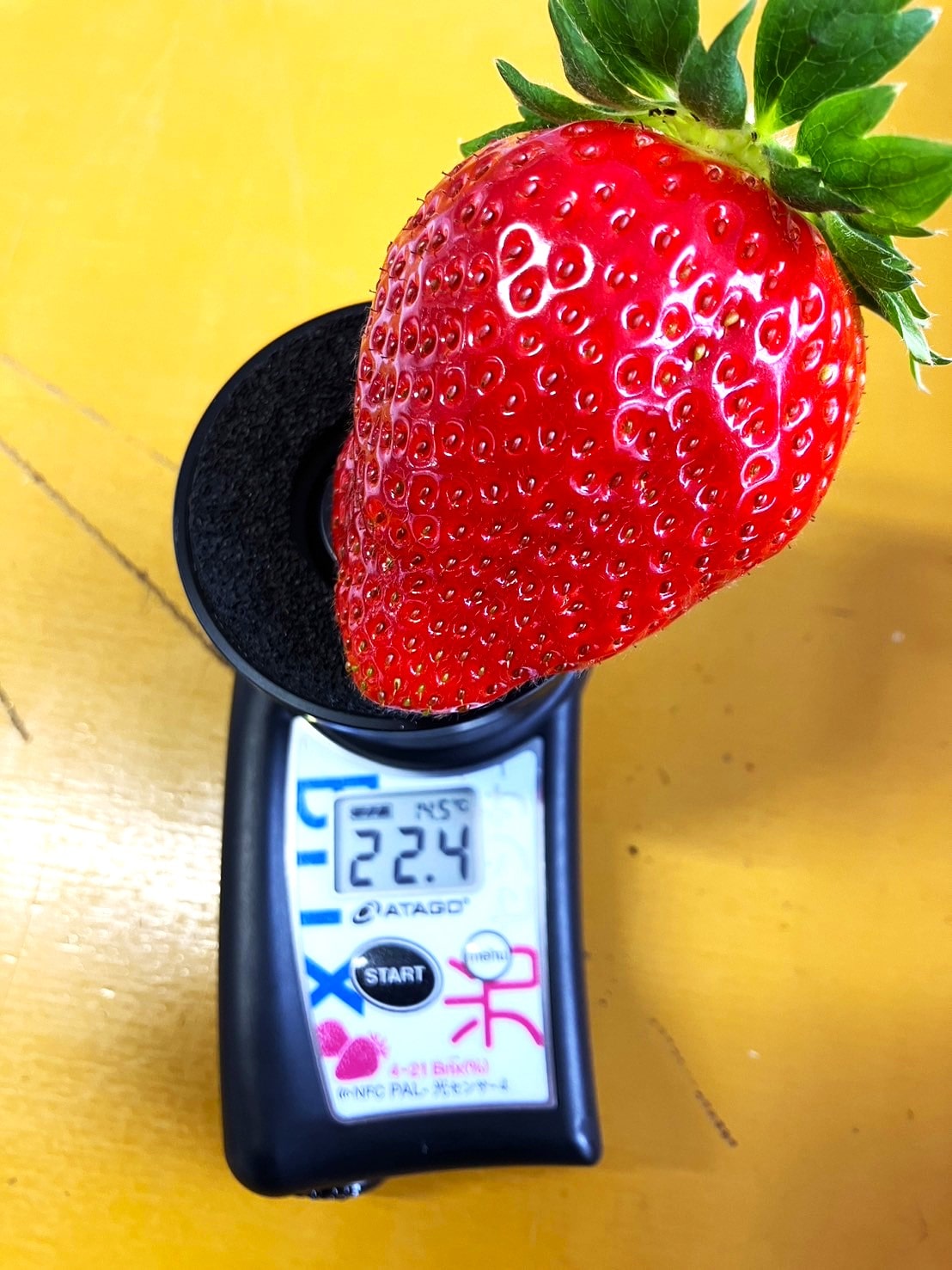 いちごの平均糖度は10~12度と言われますが、美作農園で栽培された1~2月のいちごはどの品種も完熟で20度越えを記録(2024~2025年シーズン)!