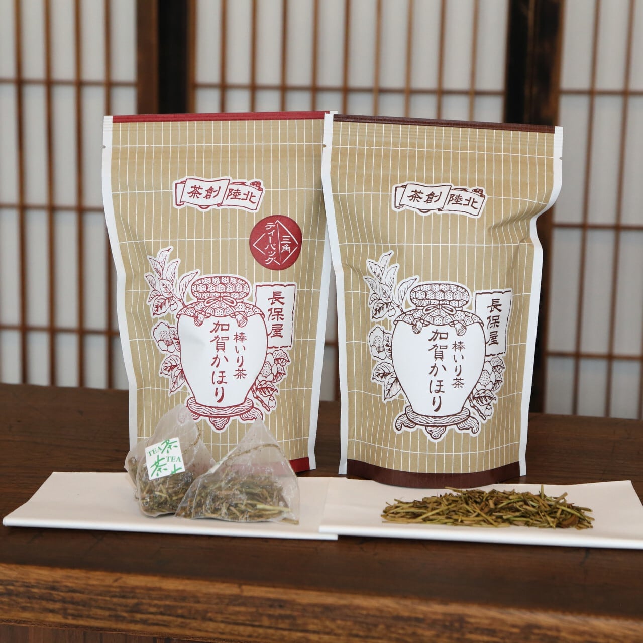 棒いり茶【加賀かほり】は長保屋自家工場にて、茎の部分だけを均一に浅く炒り上げた加賀棒茶です。日本料理や和菓子の味ともマッチした、澄みきった味わいがあります。特に、水だしはオススメで琥珀色の棒いり茶をお楽しみいただけます。