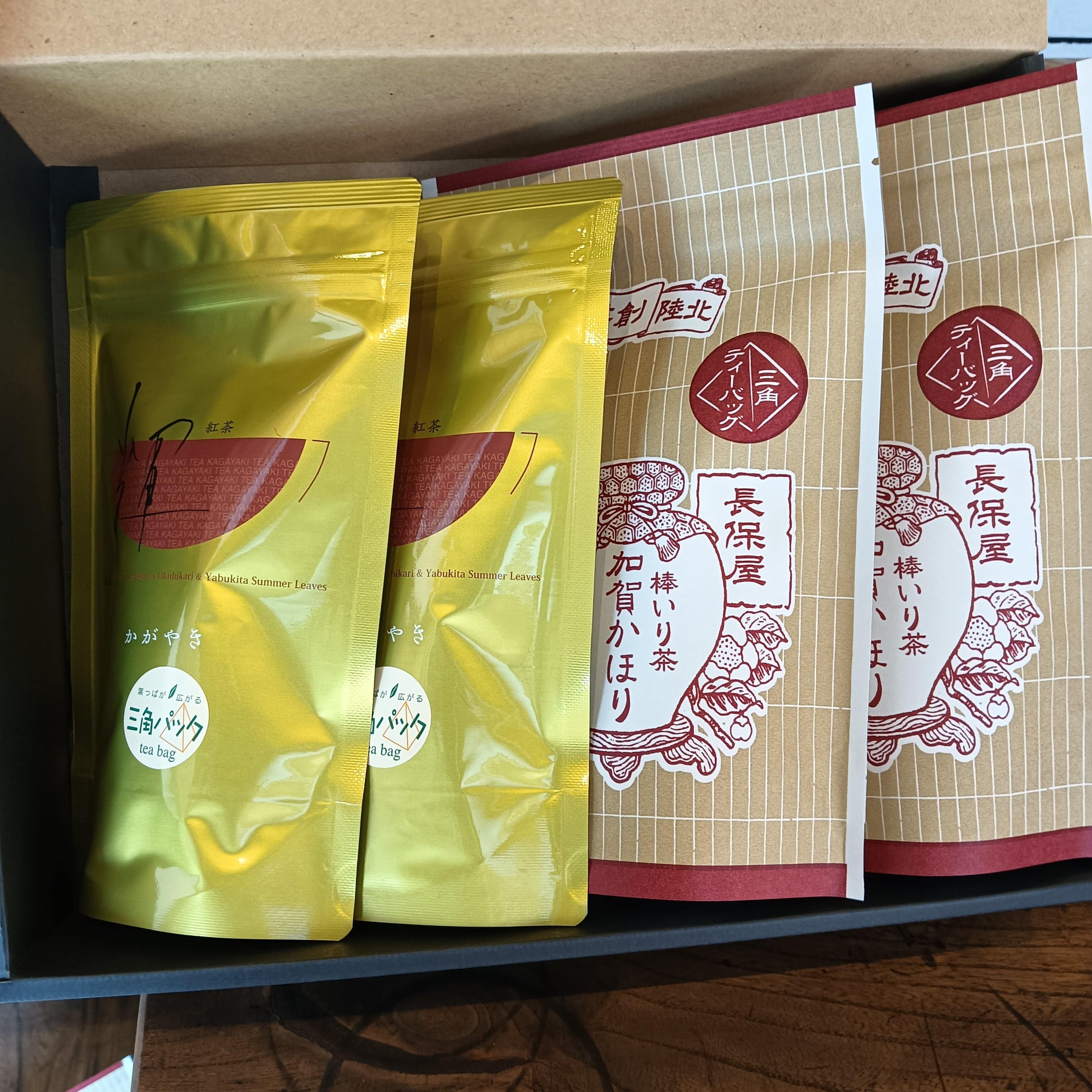 - 棒いり茶3g×12袋×2個、加賀の紅茶3g×10袋×2個