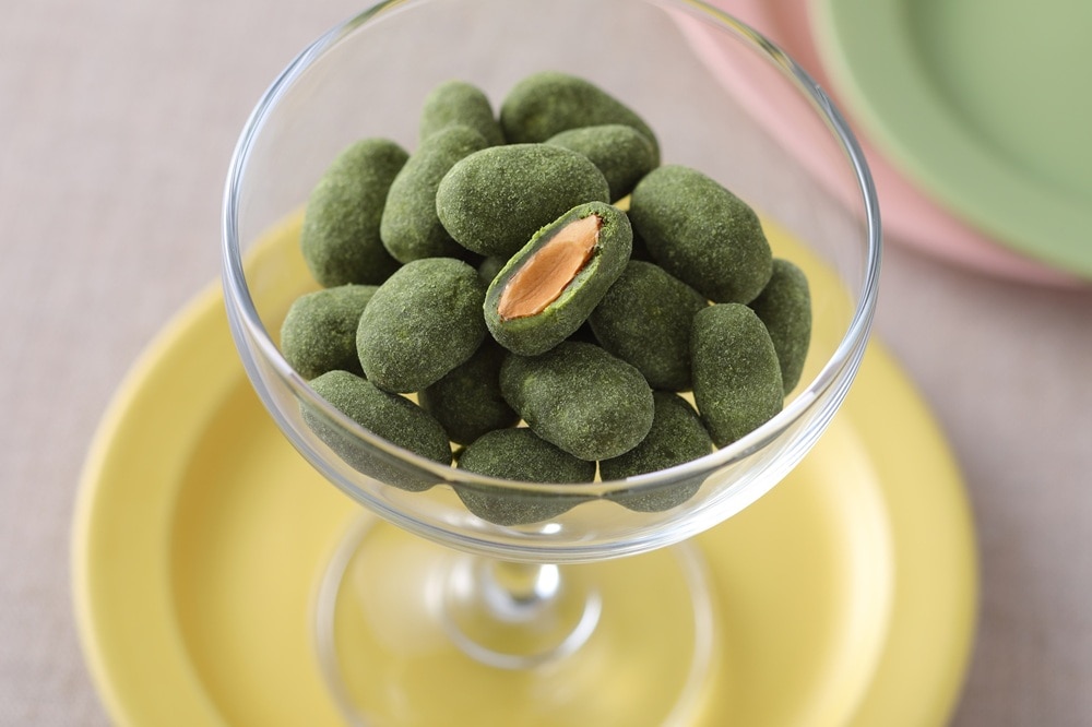 香ばしいアーモンドに、濃厚でほろ苦い宇治抹茶と、香り高い京都府産ほうじ茶を贅沢にコーティング。老舗茶舗「ちきりや」監修のお菓子で、ティータイムや贈り物にも最適。