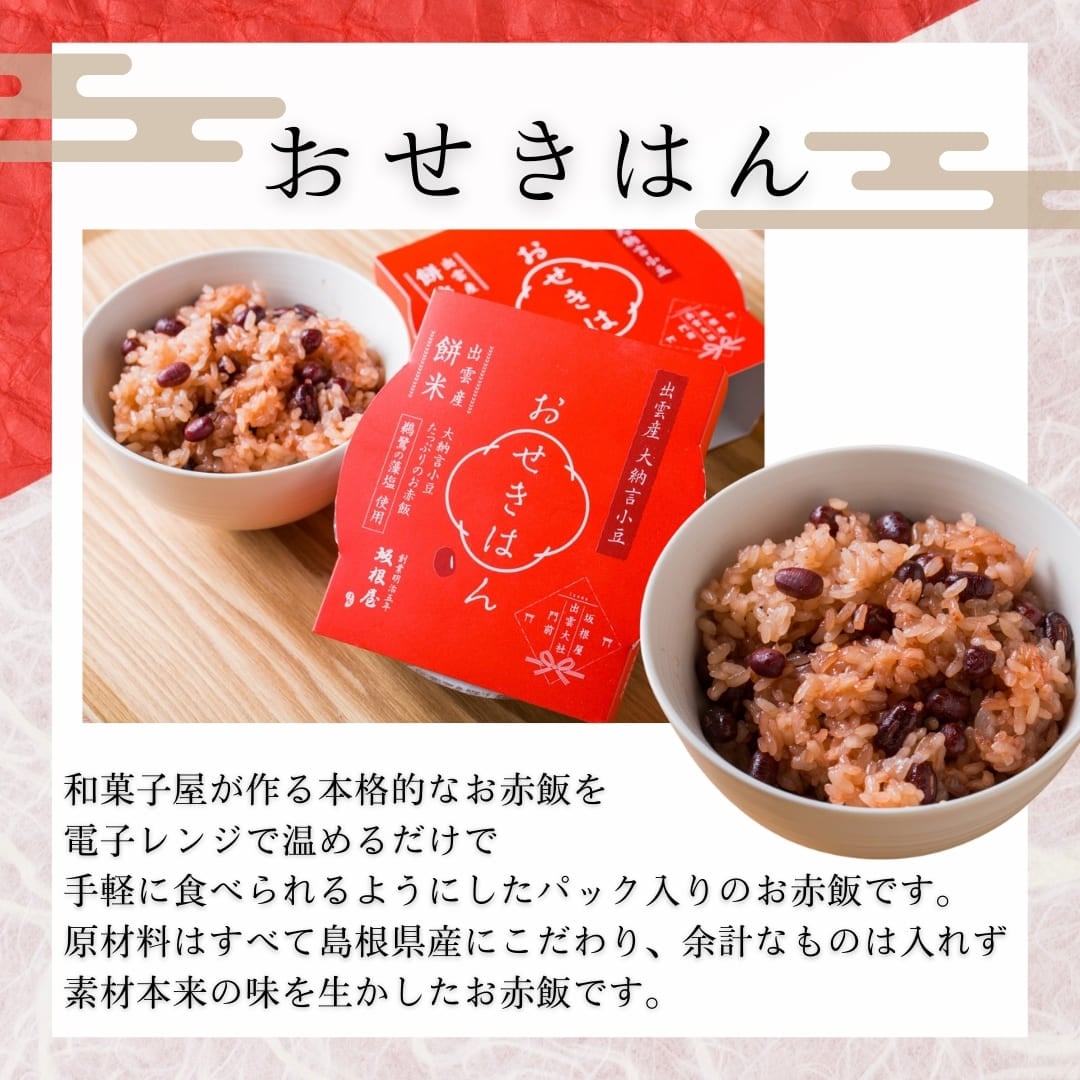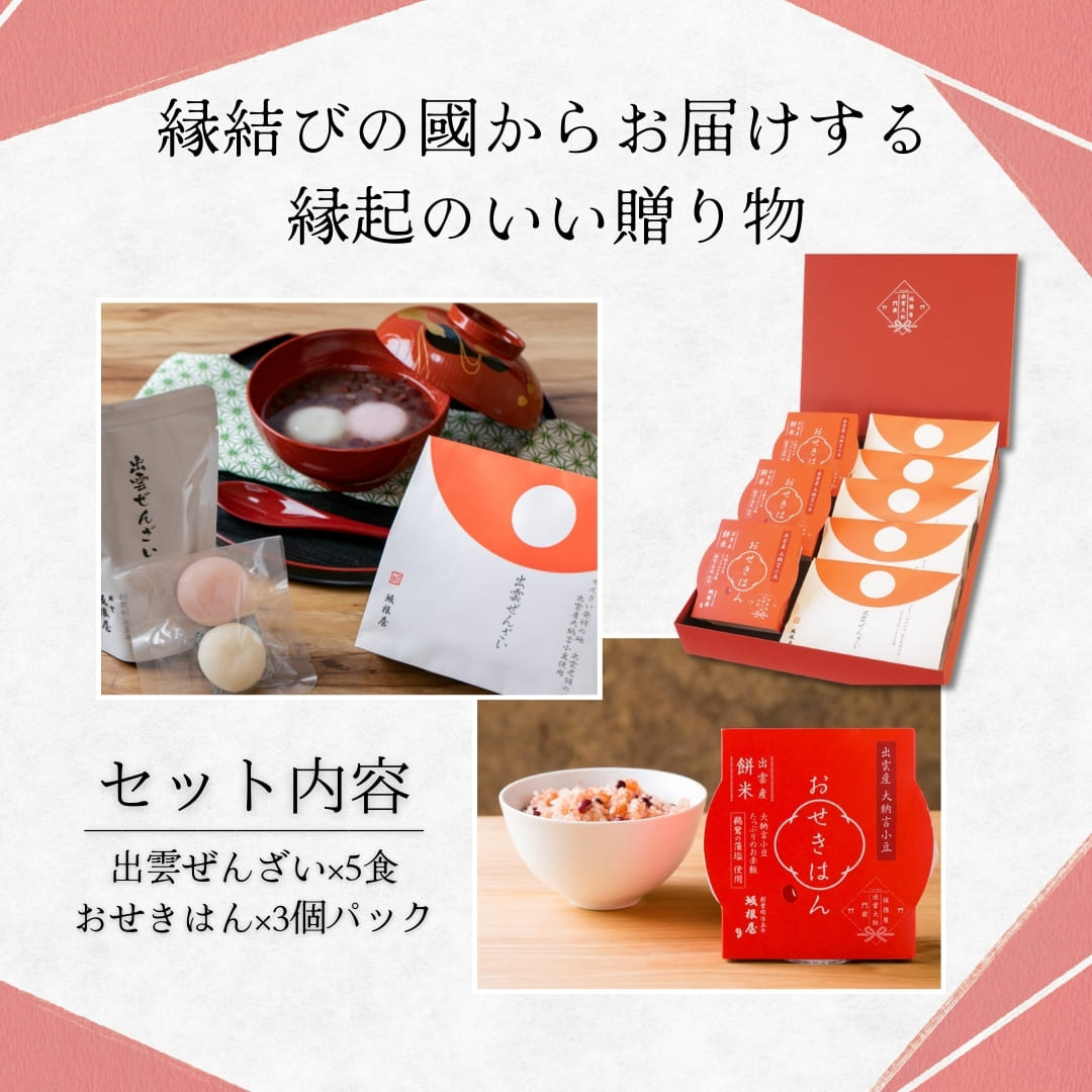 - 【出雲ぜんざい】180g(ぜんざい140g、紅白餅40g)×5食 【おせきはん】200g×3個