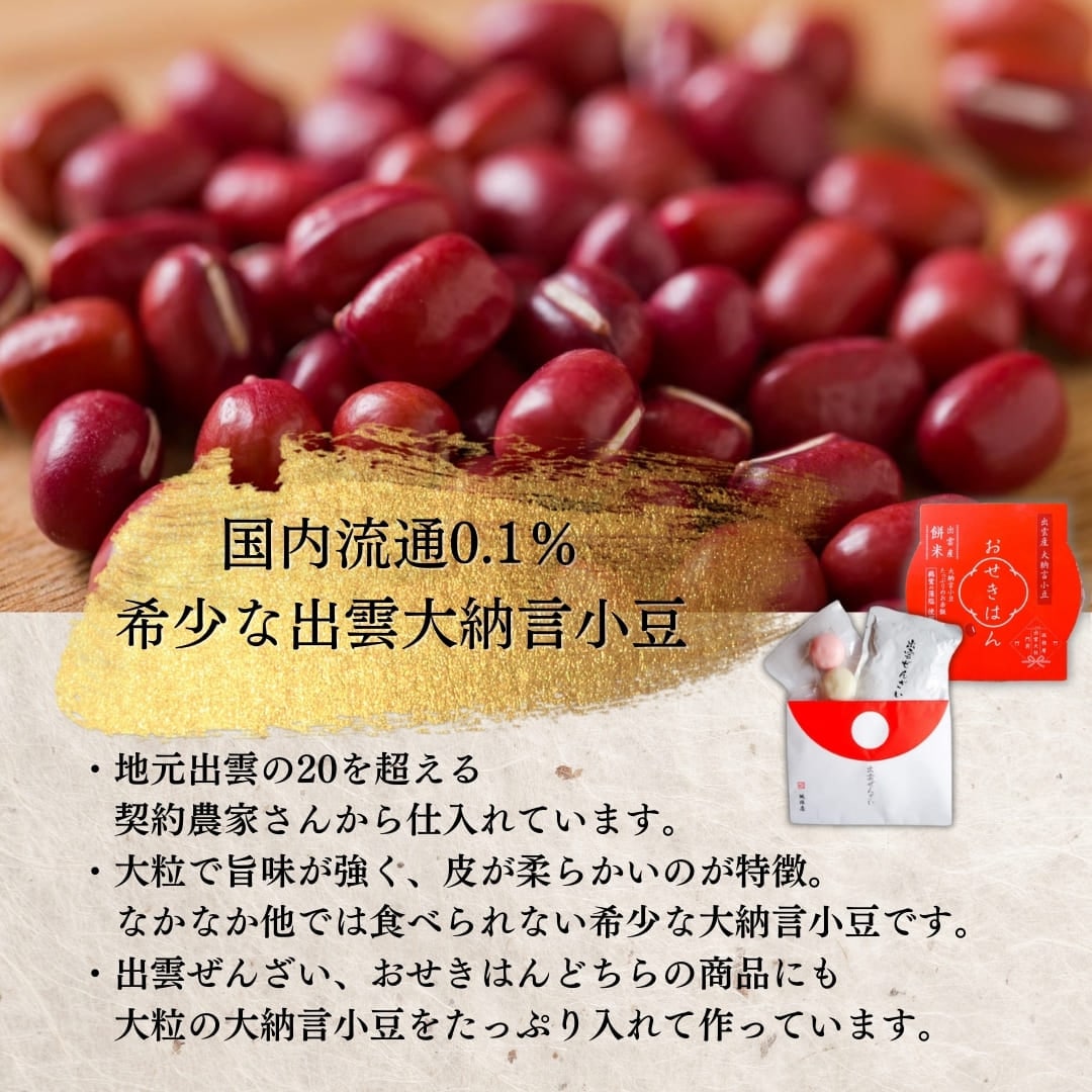 出雲大納言小豆を使った“おせきはん”と出雲ぜんざいの詰め合わせです。