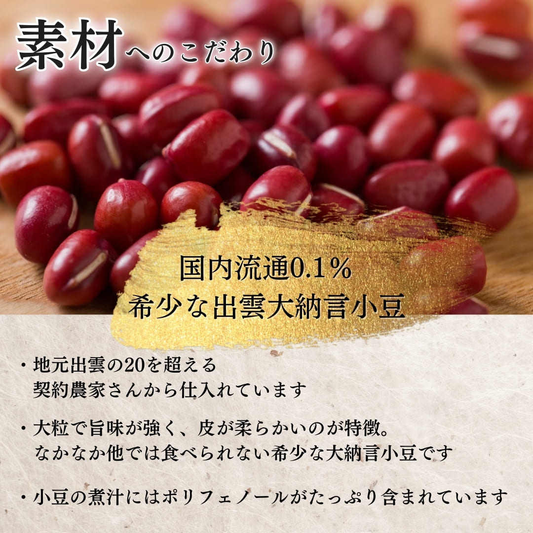こだわりの出雲産の原材料・国内流通0.1%の希少な出雲大納言小豆