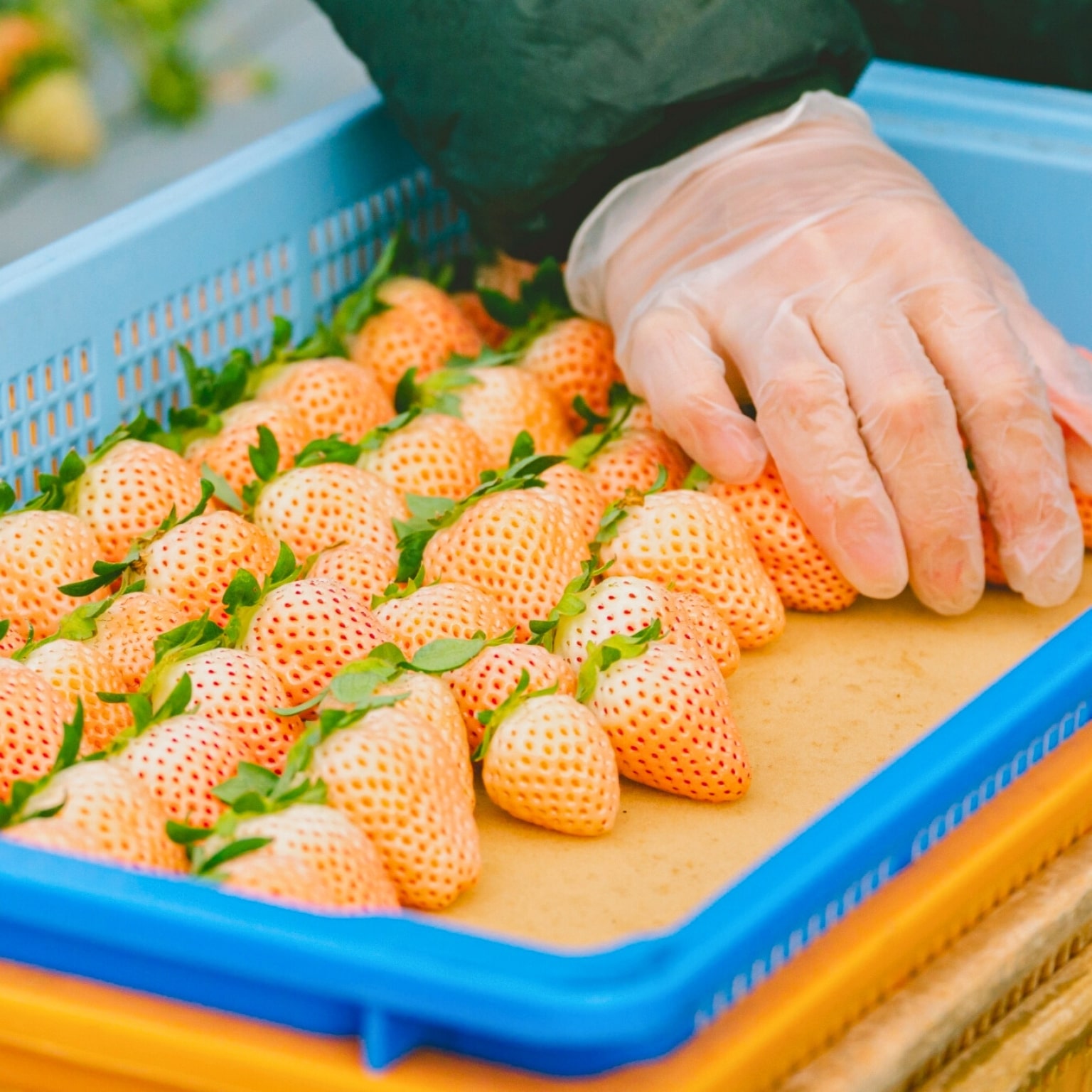 収穫カゴの中でもイチゴにストレスの掛からないように。