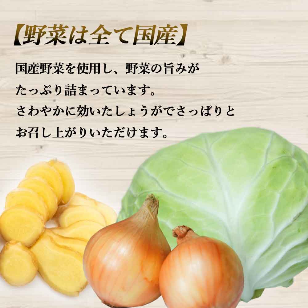餃子はいずれも国産野菜を使用しており、さっぱりとしたしょうがの味を楽しめます。