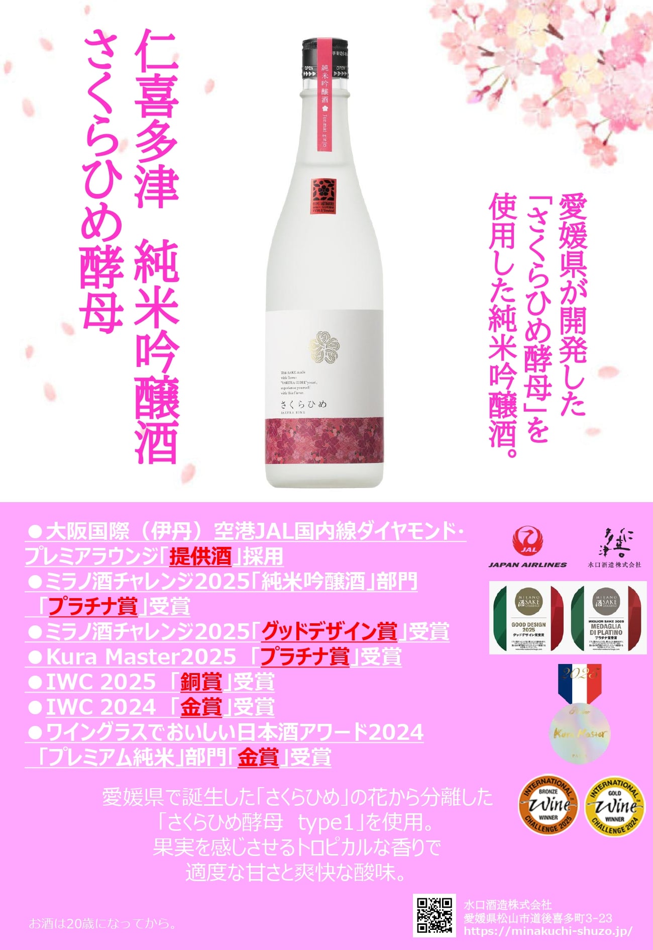 愛媛県で誕生した「さくらひめ酵母」を使用した純米吟醸酒。