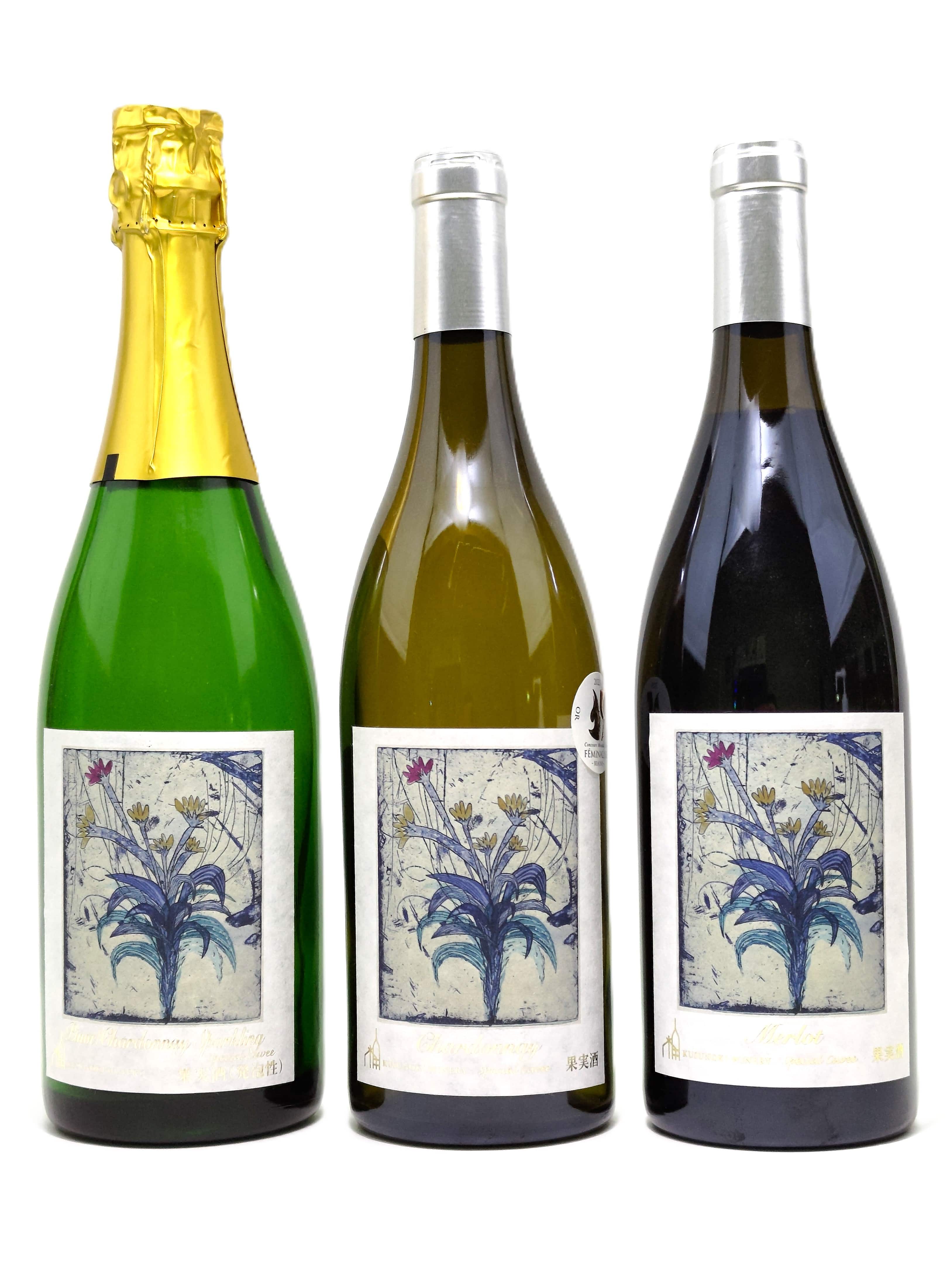 楠の上位キュヴェである「スペシャルキュヴェ」シリーズを贅沢に泡・白・赤の3本セットにしました。ピノ/シャルドネ スパークリング スペシャルキュヴェ