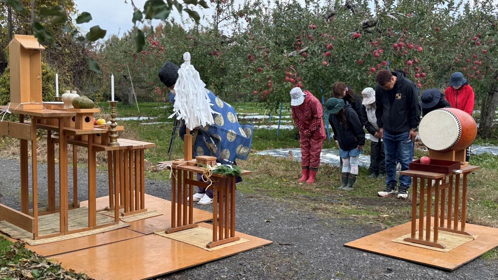 当農園ではみんなが楽しく過ごせるため、大切に育てた自慢の林檎に、さらに私たちの想いを込めて収穫直前にご祈祷していただきました。想いを込めた自慢の林檎です。