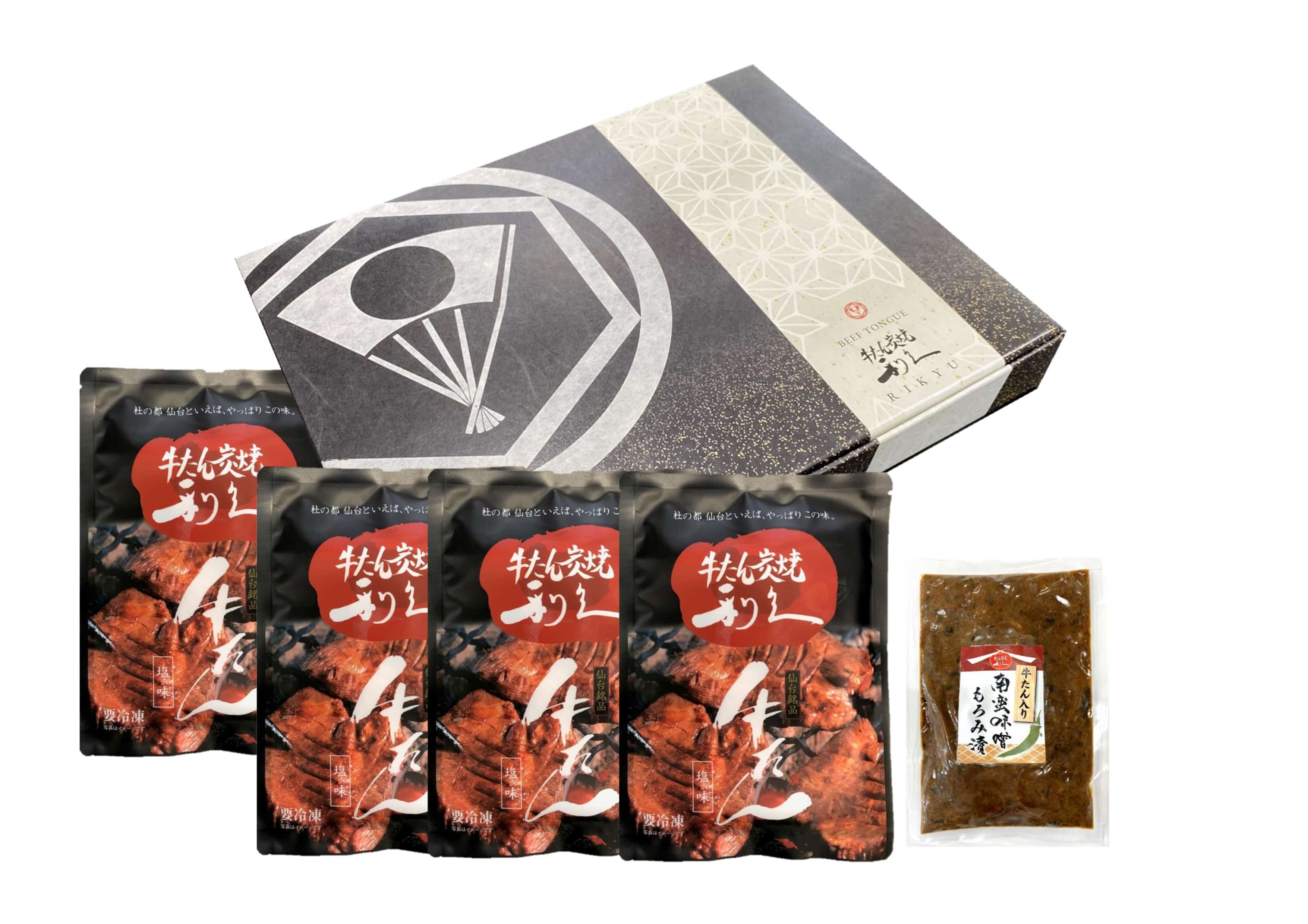 利久の牛たん 4人前を詰合せにした定番セットです。牛たん入り南蛮味噌もついておいしくお召しあがりいただけます。化粧箱入でご贈答にも喜ばれます。