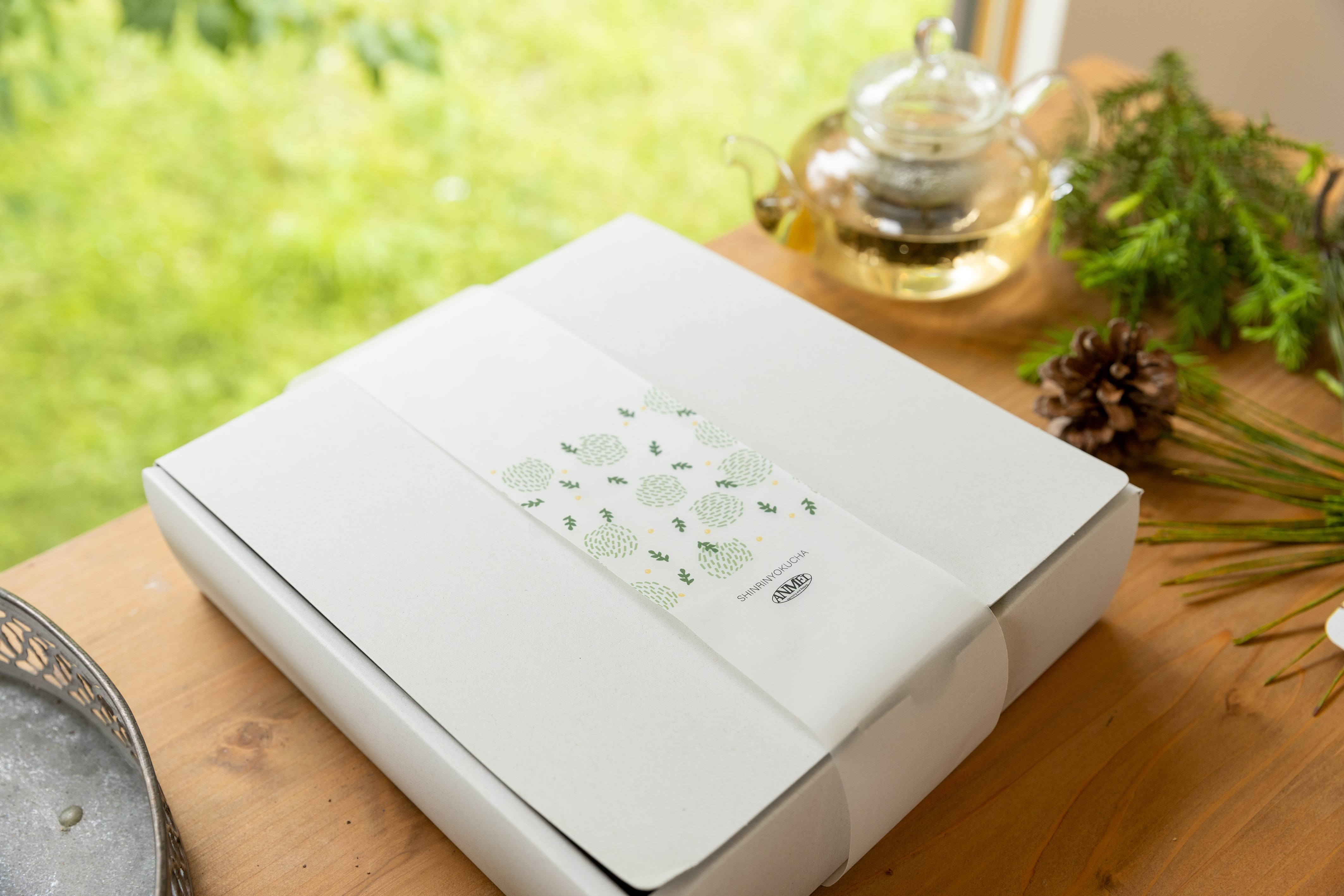 森林浴茶8種類全てが入ったギフトボックス。廃棄されてしまう枝葉を活かし、植物と会話するように、手作業で丁寧に作っています。『一杯のお茶から森と人をつなぎ、持続可能な未来へ。』をテーマに、日本の森の香りをそのまま伝えるギフトとして、印象に残る “飲むおもてなし”としてご提案できる一品です。