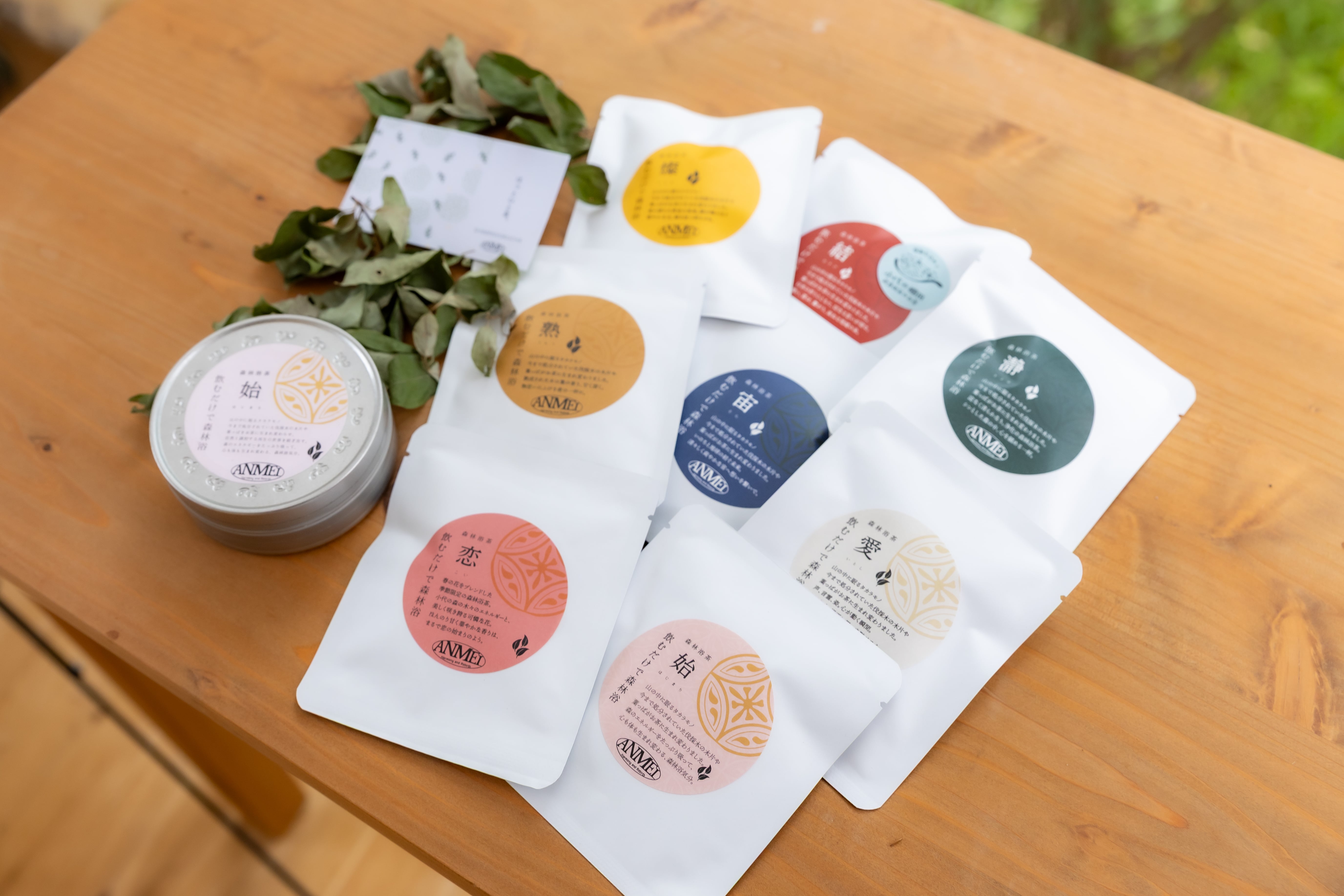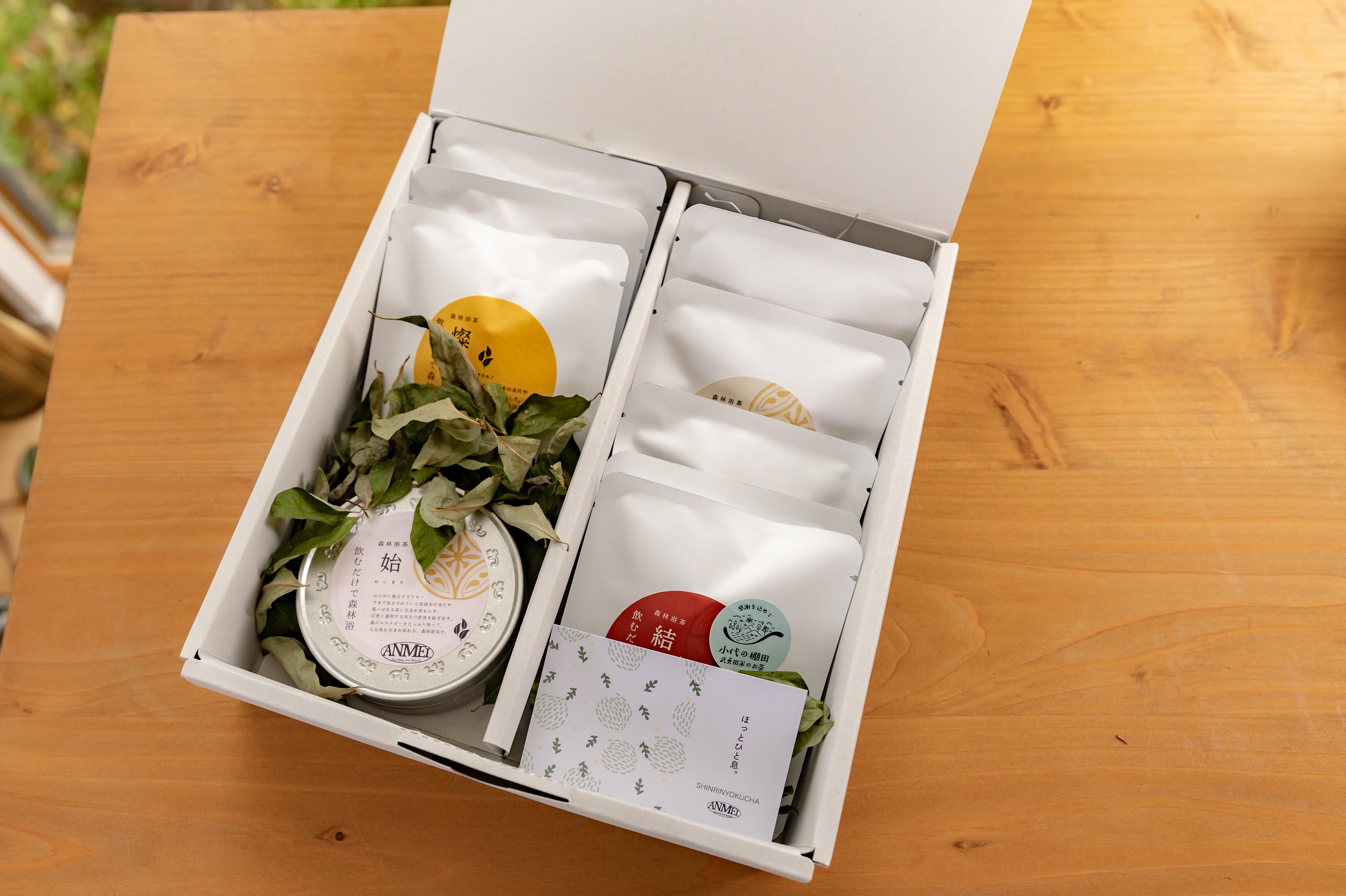 - > 森に包まれるような優しい香り。癒しの時間をお届けします。|森のハーブティー|飲むだけで森林浴気分。プレミアム森林浴茶8種類ギフトセット(森林浴茶1包入りティーバッグ1×8種類(2g×6個、3g×2個)・缶小1種類(20g)|ANMEI/森林浴茶[株式会社農協観光]