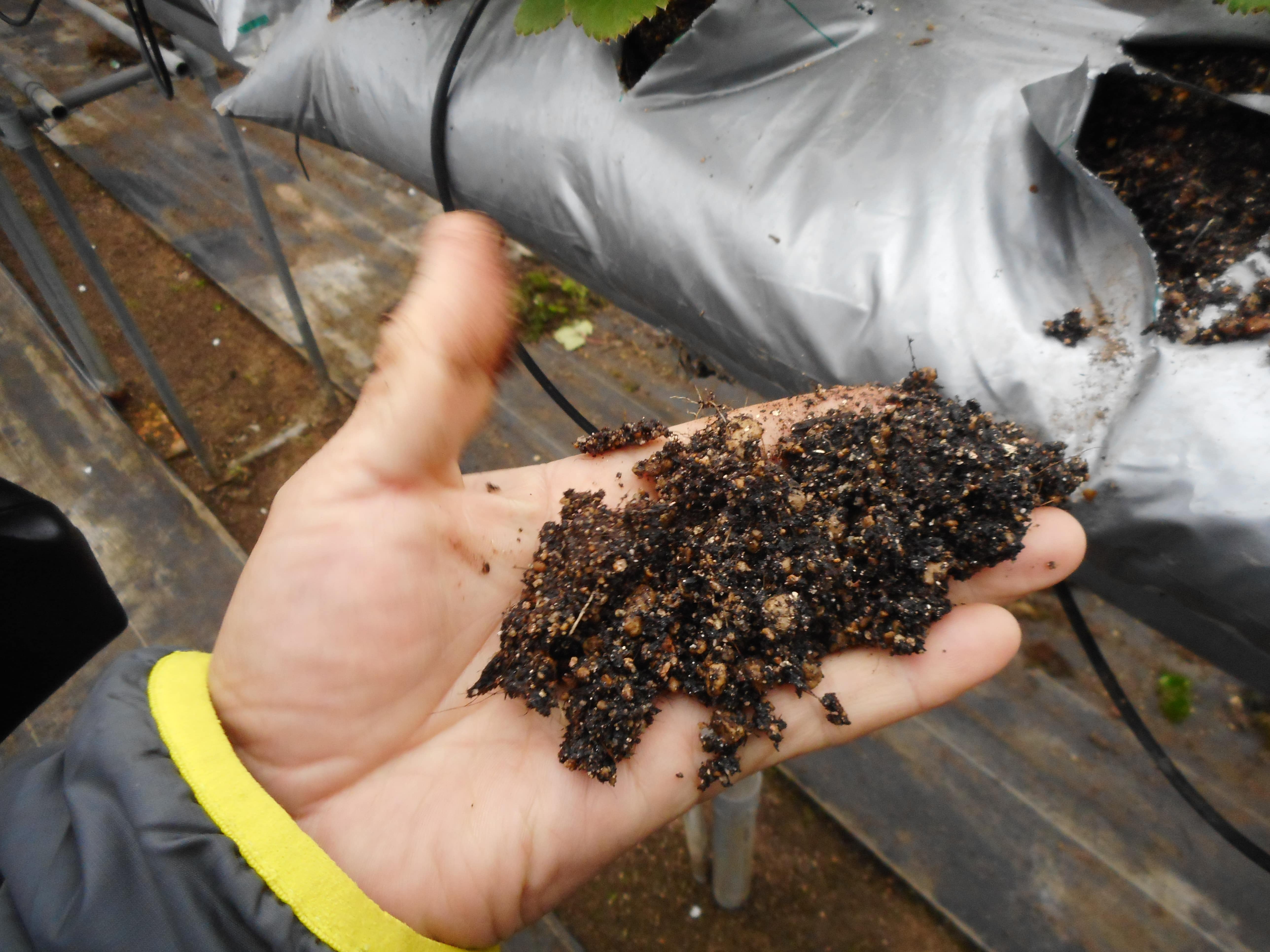グラウンドいっぱいに実ったいちごを全部甘く美味しくするために、一粒一粒苺の状態に合わせて手作業で手入れをしています。