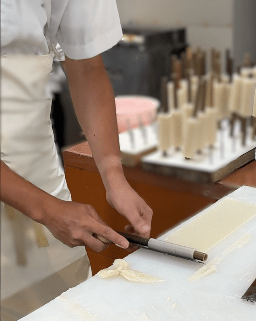 かまぼこ本来の白さやぷりぷりとした食感。これは、高品質な原料を使っているからこそ生まれるものです。新鮮な白身魚を水にさらすと、美しい自然な白さが生まれます。また、その後、塩を加える事で、魚肉のたんぱく質がねばねばになり、これを加熱することでぷりぷりとした弾力が生まれます。かまぼこは、日本が世界に誇れる優秀な加工食品。品質の良い原料を使い、受け継がれてきた職人の技と、厳選された魚の旨味を大切に守り続けています。