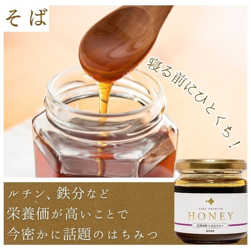 - 蕎麦蜜(百花):色が濃く、香ばしい味わい。ミネラル豊富で、コーヒー・チーズ・焼き菓子とも好相性。