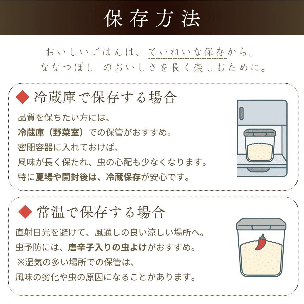 精米後は風味が落ちやすいため、開封後1ヶ月以内が理想です。