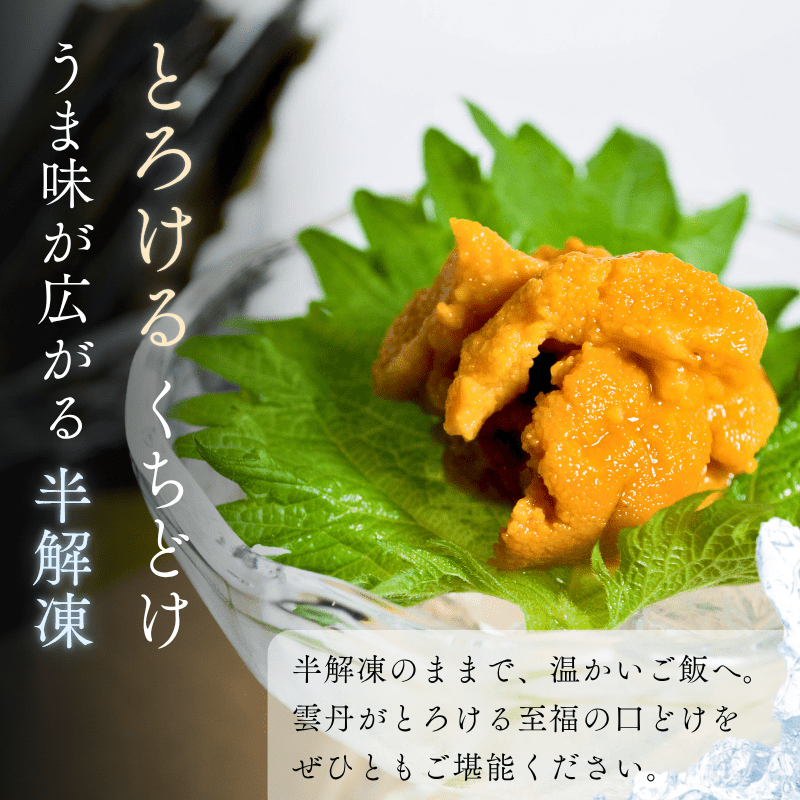 キタムラサキウニの濃厚な旨みととろける食感を、ご自宅で味わっていただけます。