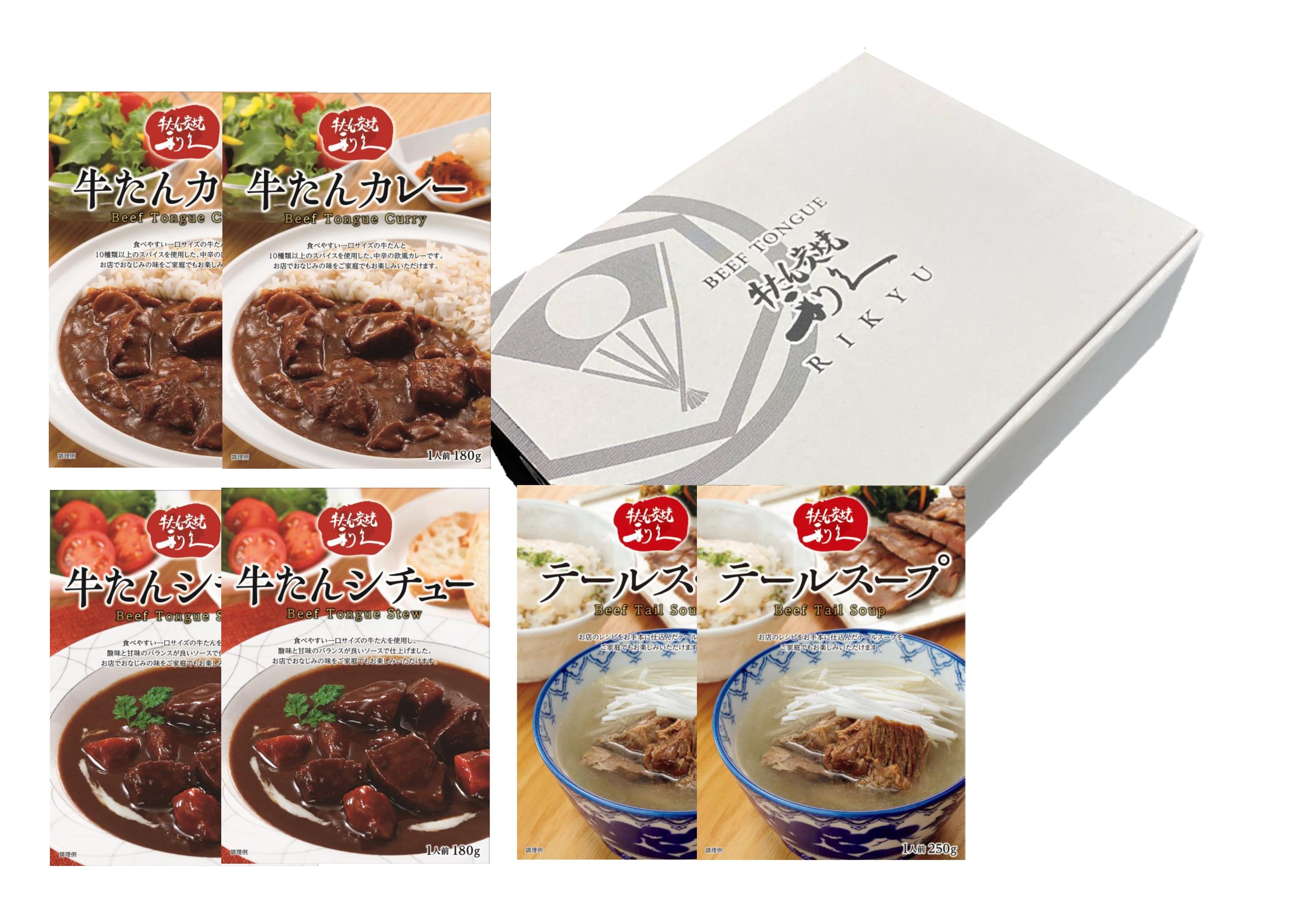- 牛たんカレー180g×2、牛たんシチュー180g×2、テールスープ250g×2