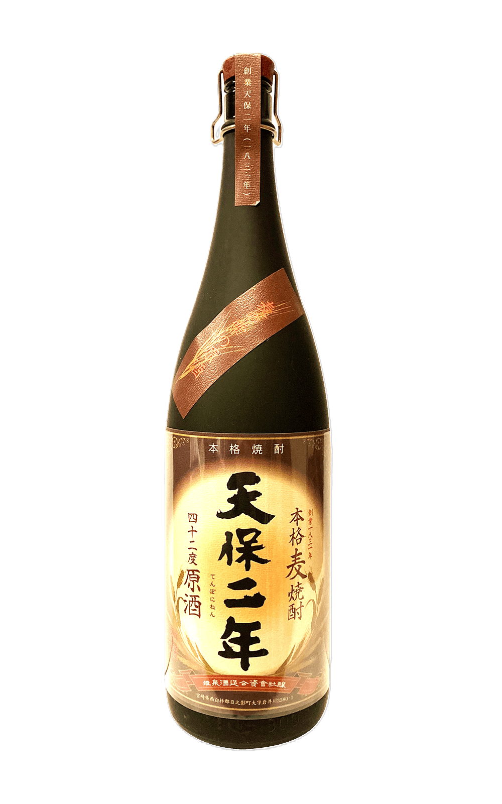 創業年度天保二年(1831年)より名付けられたこの本格麦焼酎は、国産の麦と国産米を使用し、黒麹仕込みにて造られた麦焼酎の原酒を熟成させた商品です。熟成されたまろやかな味わいと水を一滴も加えていない原酒ならではのコクのある深い味わいをご堪能下さい。