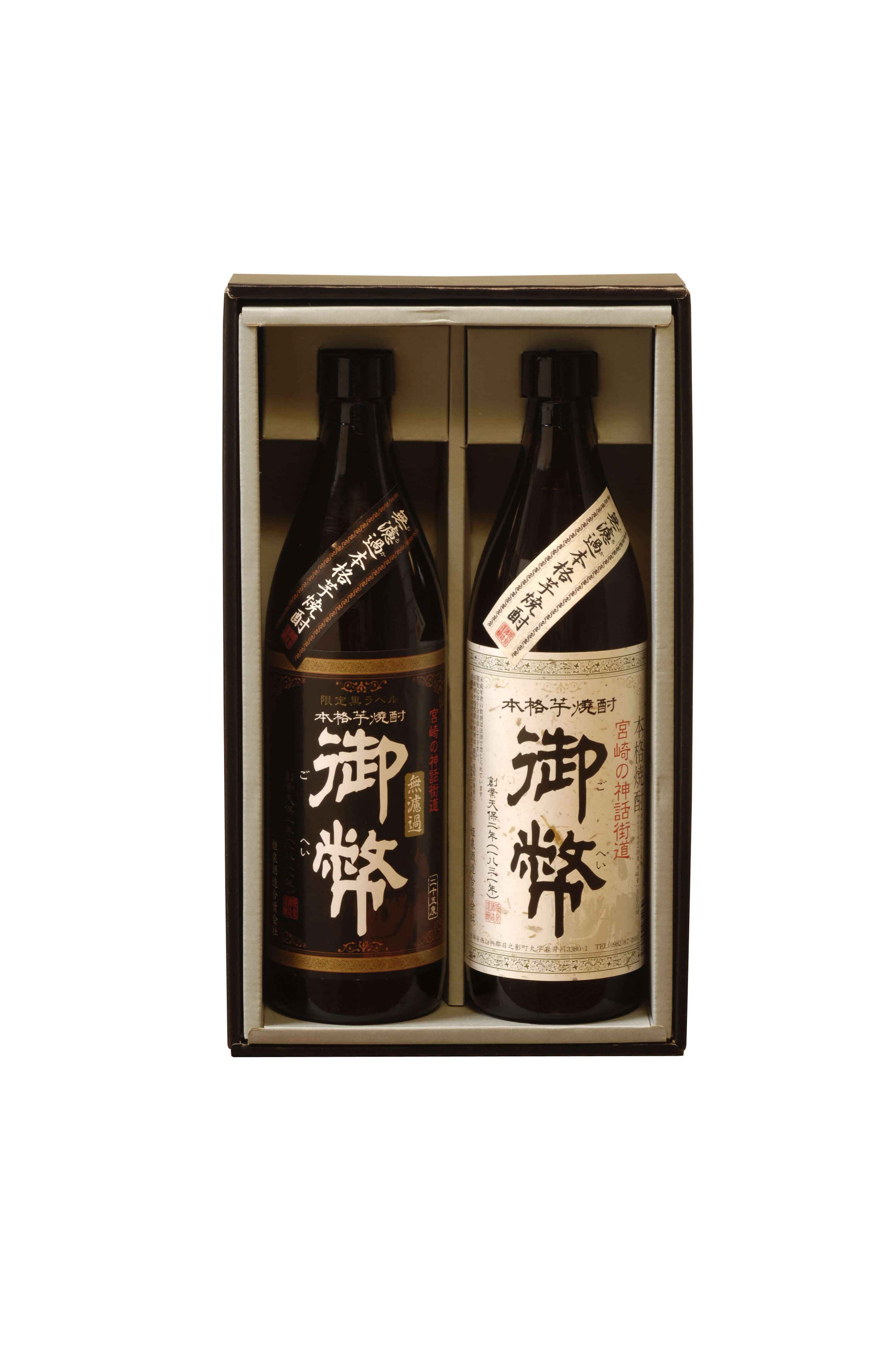 - 内容量:900ml×2 本格芋焼酎 無濾過御幣 20度900ml 本格芋焼酎 無濾過御幣限定黒ラベル 25度900ml 化粧箱入り 重量:3.2kg
