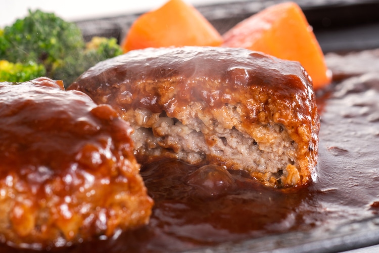本品は生ハンバーグをオーブンで焼き上げ冷凍した真空パック商品ですので、電子レンジまたは湯煎での簡単調理でお召し上がりいただけます。