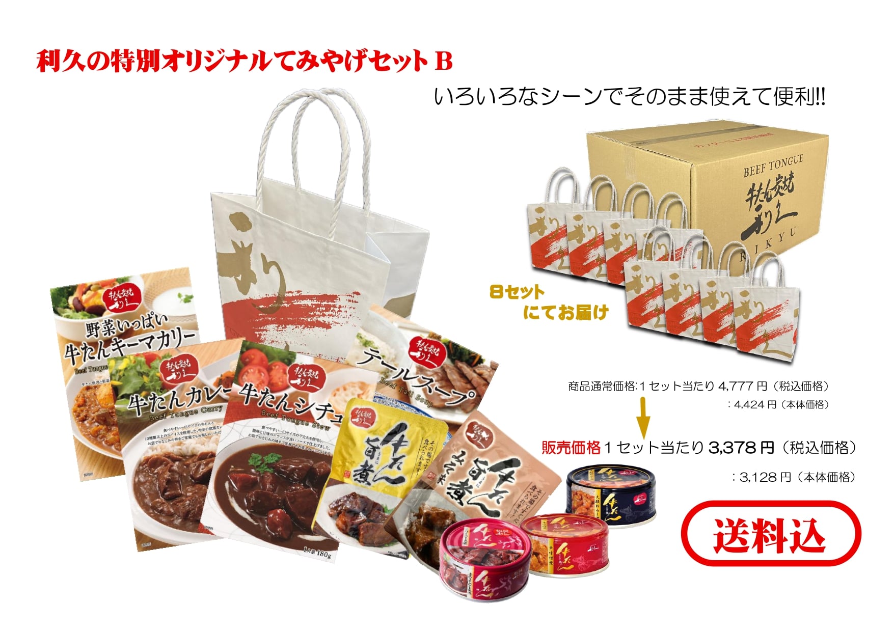 お得な特別オリジナルの詰合せセットです。利久の牛たん商品が入った手提げ紙袋タイプです。