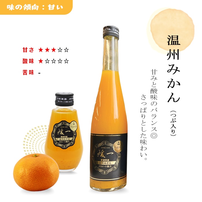- > 媛一ジュース大瓶&小瓶5本セット_つぶ入り・媛一まどんな・せとか・はるみ・伊予柑 愛媛柑橘の味わい!「小林果園」[農ぷらす愛媛株式会社]