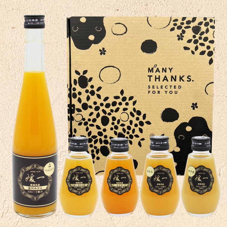 ![媛一ジュース大瓶&小瓶5本セット_つぶ入り・媛一まどんな・せとか・はるみ・伊予柑 愛媛柑橘の味わい!「小林果園」[農ぷらす愛媛株式会社] 宅配 つぶ入り・媛一まどんな・せとか・はるみ・伊予柑x各1本](/img/0032/goods/L/S0000761.jpg)