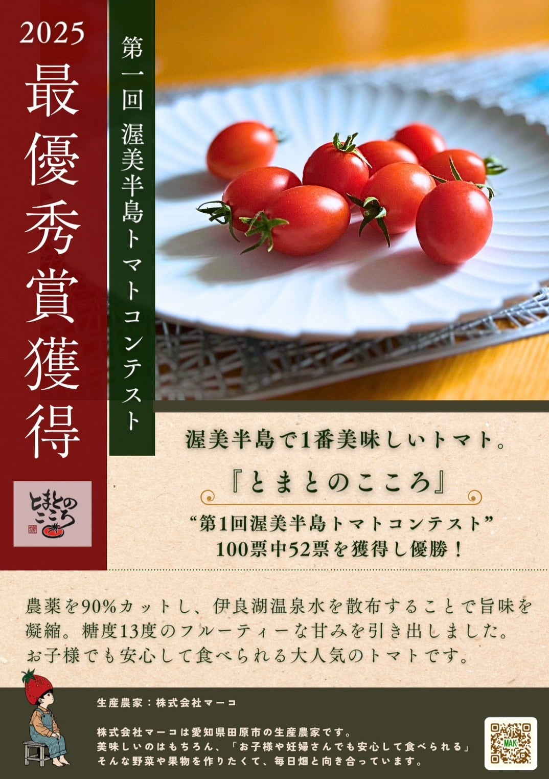 さらに、渥美半島で開催された「おいしいトマトを決めるコンテスト」では、100票中52票を獲得して見事優勝。