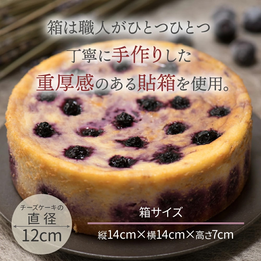 コンフィチュールにしたわかさ生活さんのブルーベリーを、チーズケーキ生地にマーブル状にまぜこみました。ブルーベリーとチーズのコントラストをお楽しみください。