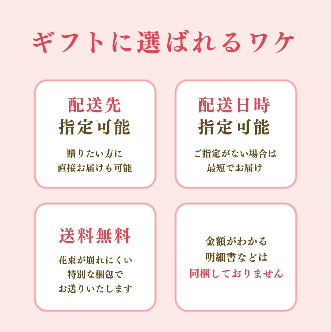 お届け日指定可能: 記念日や誕生日、パーティーに合わせて、最高の状態でお届けできるよう日付指定を承ります。