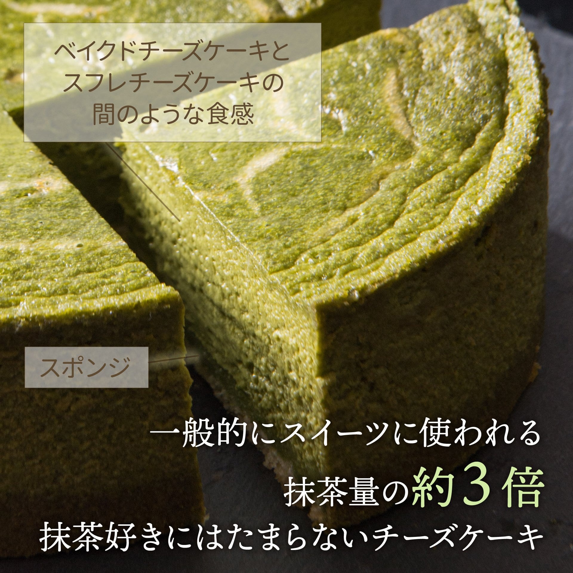 焼き加減:スフレとベイクドの中間、しっとりしているのにふわふわ。15年の研究の成果です。