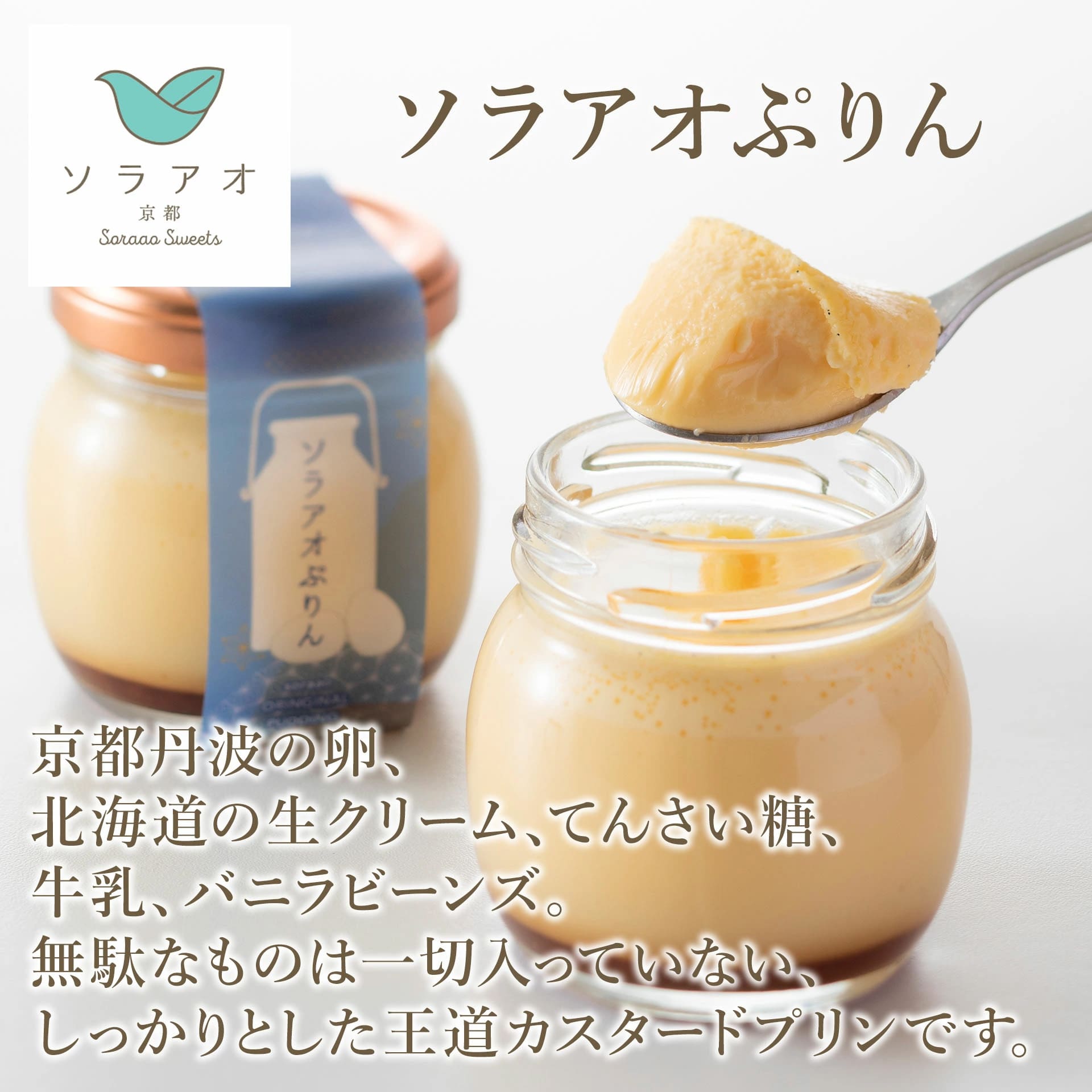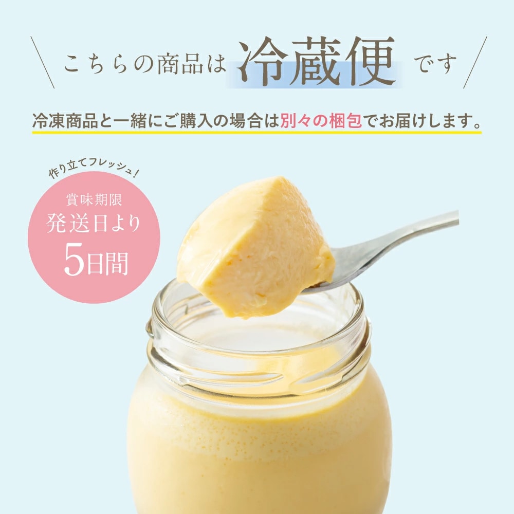 京都丹波の赤卵、北海道の生クリーム、てんさい糖、牛乳、バニラビーンズを使用。