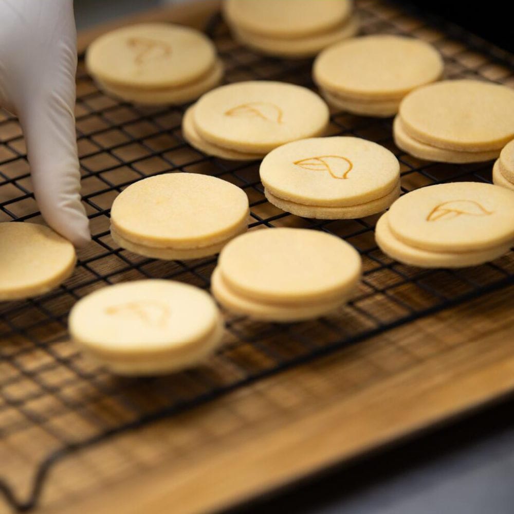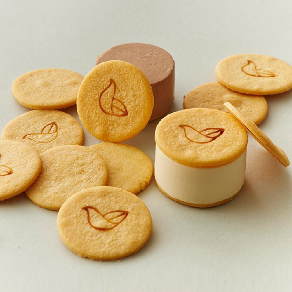 秘密のレシピでアイスチーズケーキを作り、ほろほろクッキーで挟みました!お店でひとつひとつ丁寧に手作りしたクッキーはあえてアイスチーズケーキとの食べ応えを考えて薄めに焼いています。