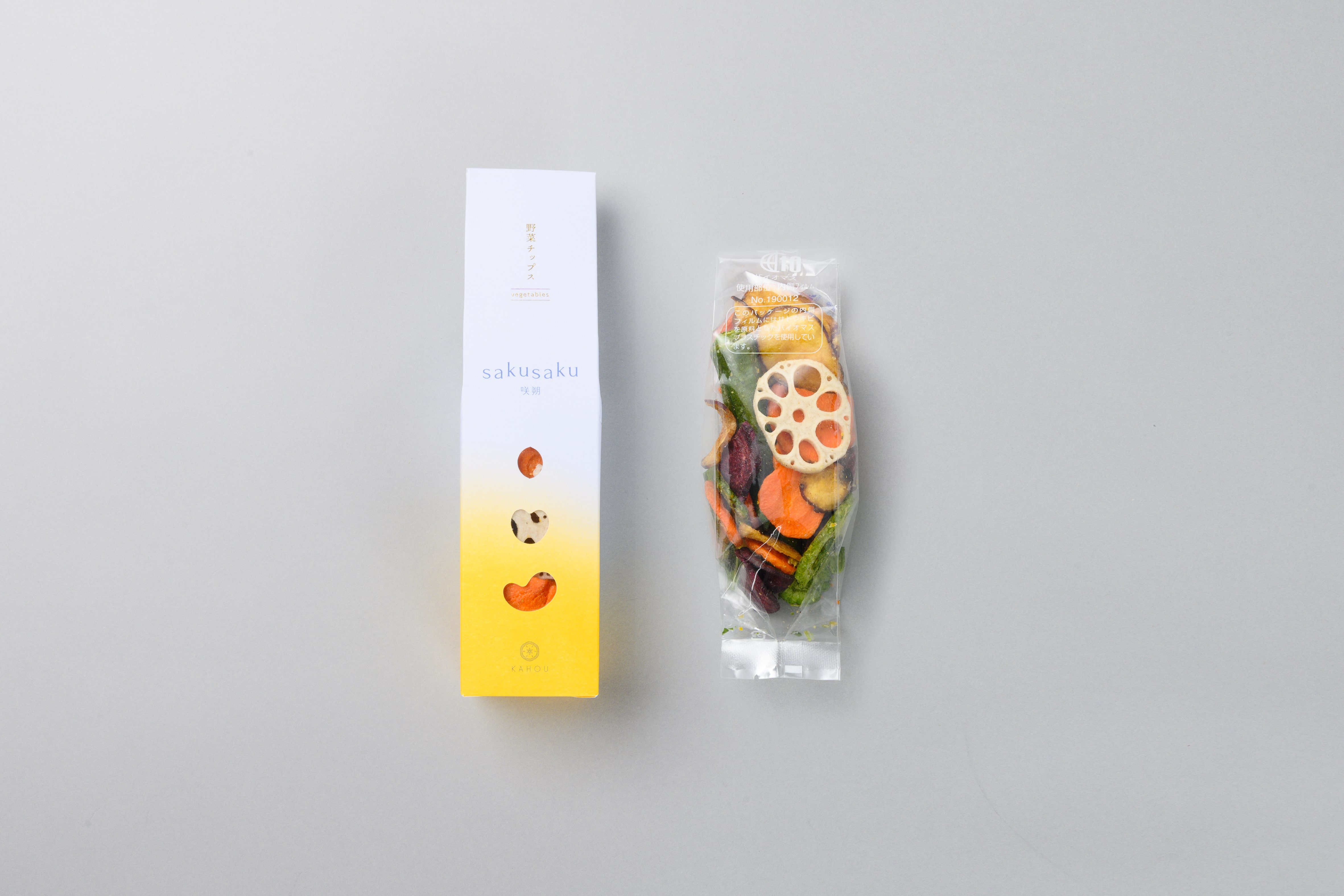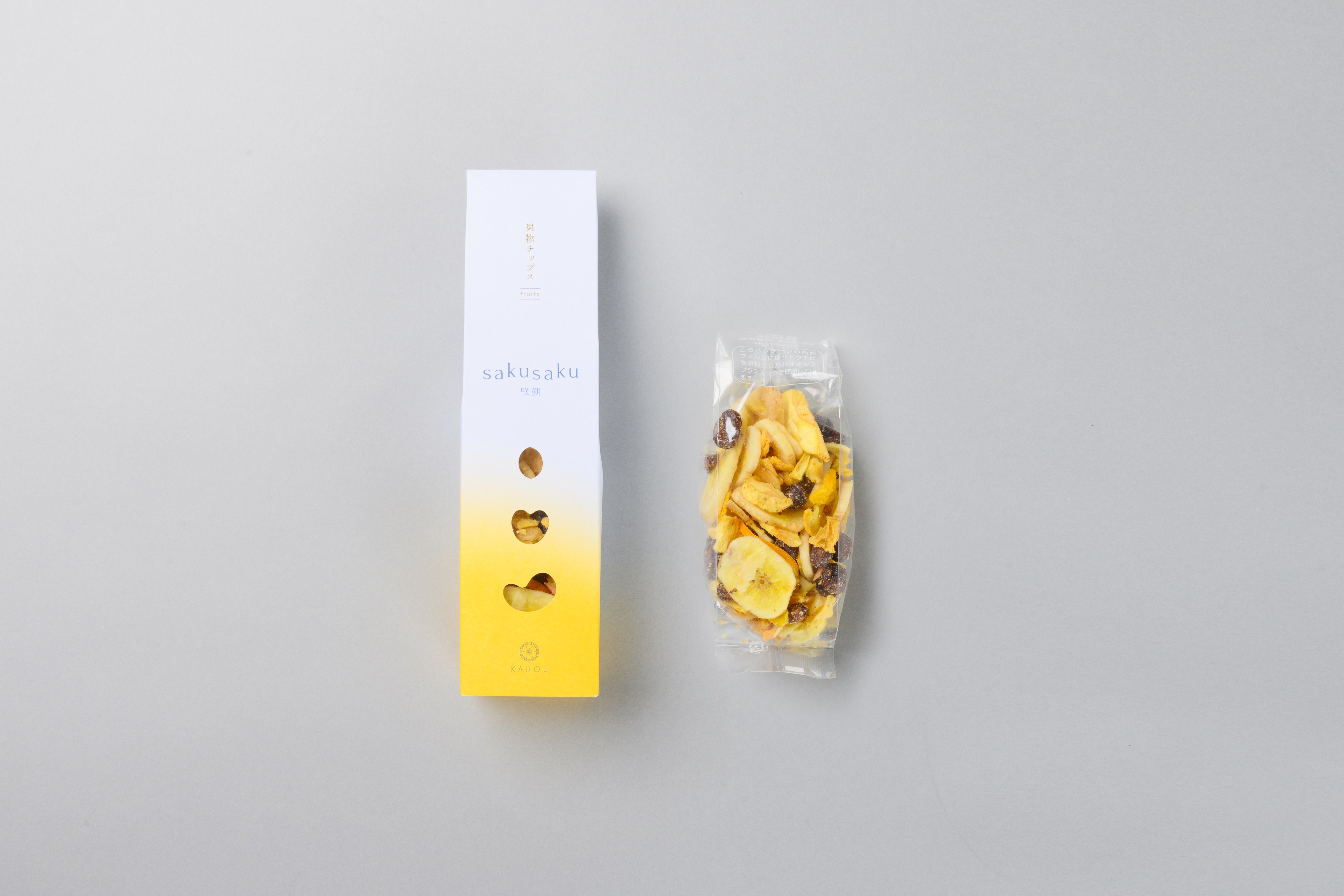 季節のご挨拶、節目の贈り物(御中元・御歳暮・御礼・御祝・内祝・御供・粗供養など)に贈る方贈られた方の笑顔を繋ぐ果朋-KAHOU-のギフト。咲朔:2種(野菜チップス、果物チップス)、燦樂6個入