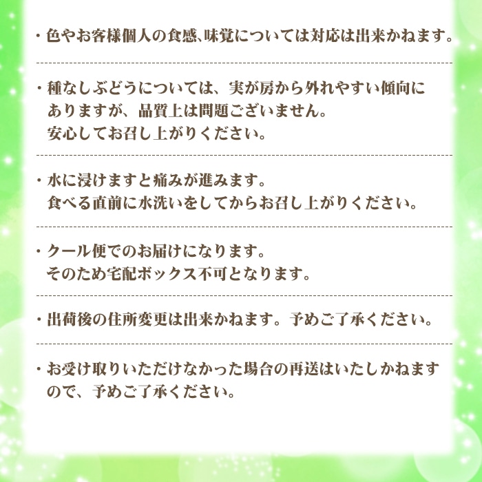 ※シャインマスカットは追熟しないため、届きましたらお早めにお召し上がりください。