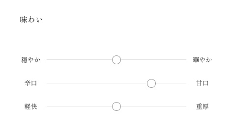 梅やグアバのような繊細な香りが優しく漂い、口あたりはなめらかでほのかな旨みを感じます。その穏やかな味わいは、風のない穏やかな夕暮〈夕凪〉に川辺の草花を静かに眺めるようなゆとりあるひとときを思い起こさせます。