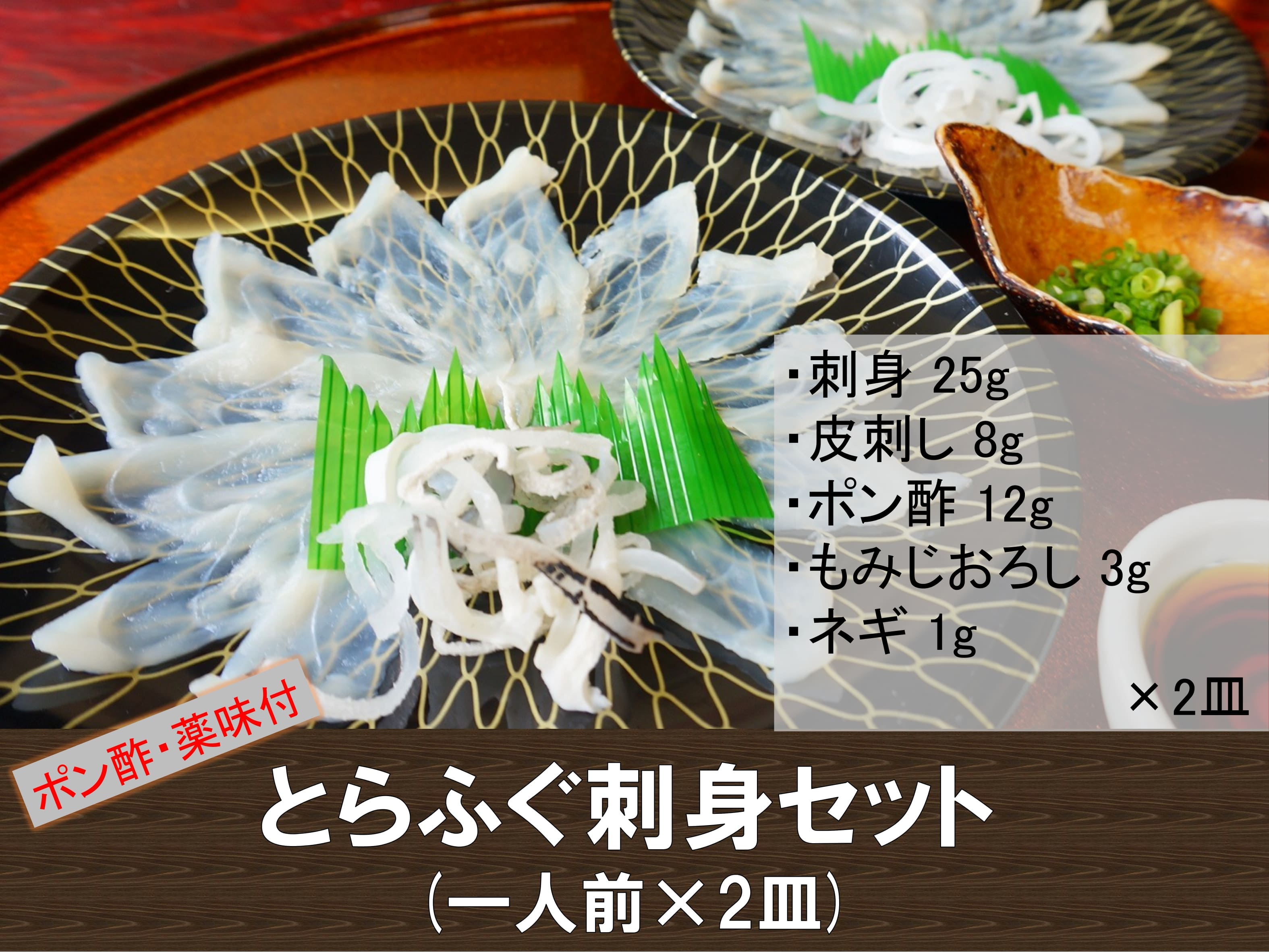 - 刺身20g、皮刺し8g、ポン酢12g、もみじおろし3g、乾燥ネギ1g×2皿