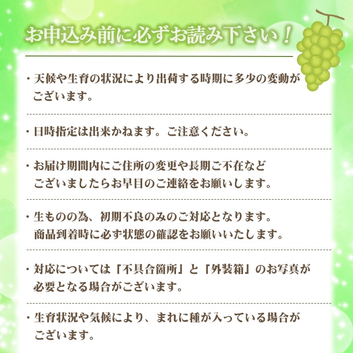 ※シャインマスカットは追熟しないため、届きましたらお早めにお召し上がりください。