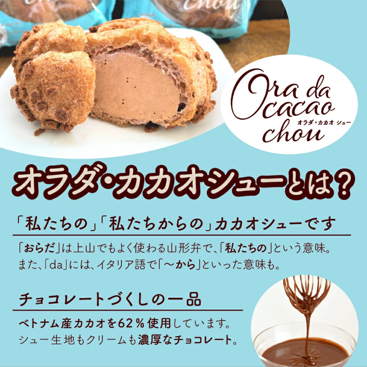 - かみのやまシュー(カスタード4個、アップルカスタード2個)、オラダカカオシュー2個 (計8個入)(1個あたり約75g)
