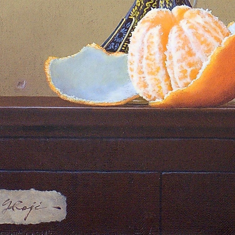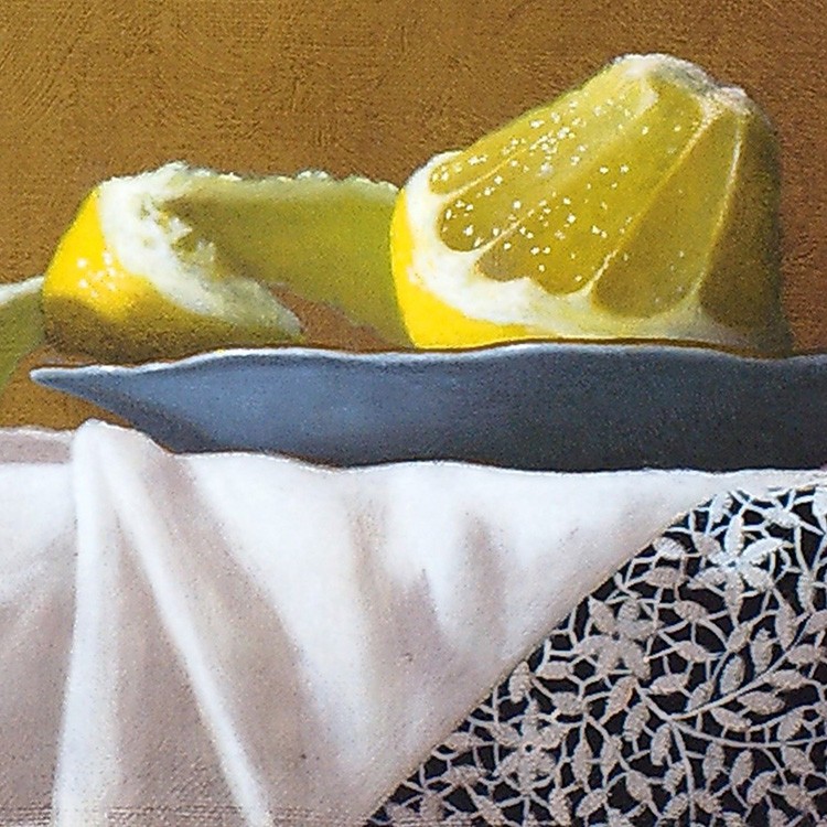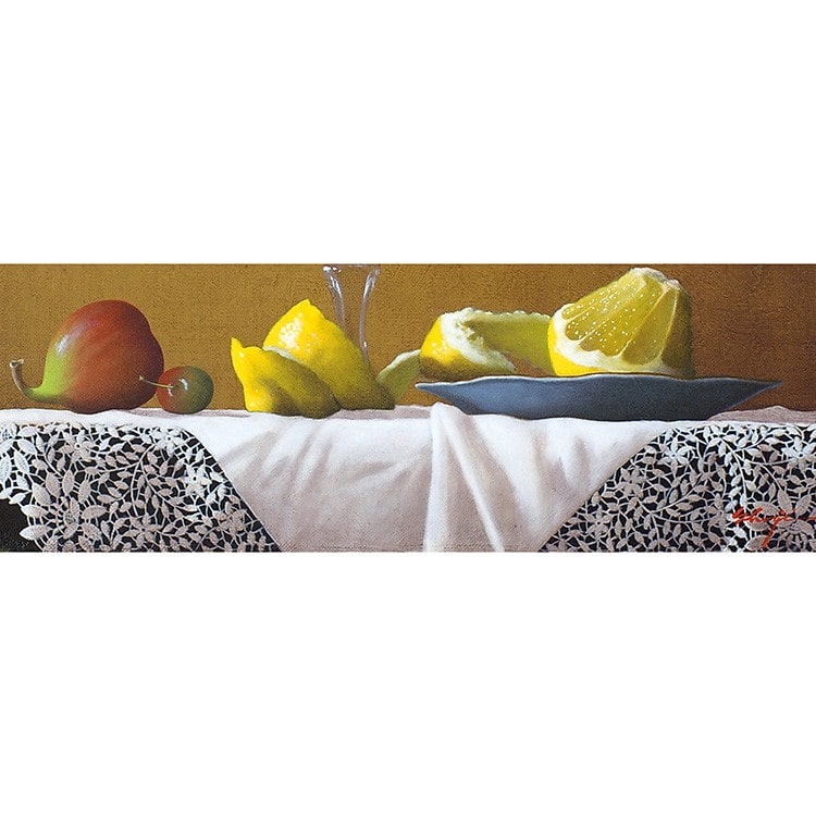 この作品の主役はレモン。無造作に剥かれた皮と造形的にきれいにカットされた果肉部分。唾液が出てきそうなくらい瑞々しく描かれている。この“皮が剥かれたレモン”を描く表現方法は「ヴァニタス絵画」といわれ16世紀から17世紀のヨーロッパ北部で多く描かれていたもので一つのジャンルとして確立されていた。「人生の虚しさや儚さ、虚栄の無意味さ」を寓意的に表す絵画として主に静物画が描かれた。この作品を制作した時の作家の心情は窺い知れないが、しかし少なくとも何かを伝えたかったことには間違いない。