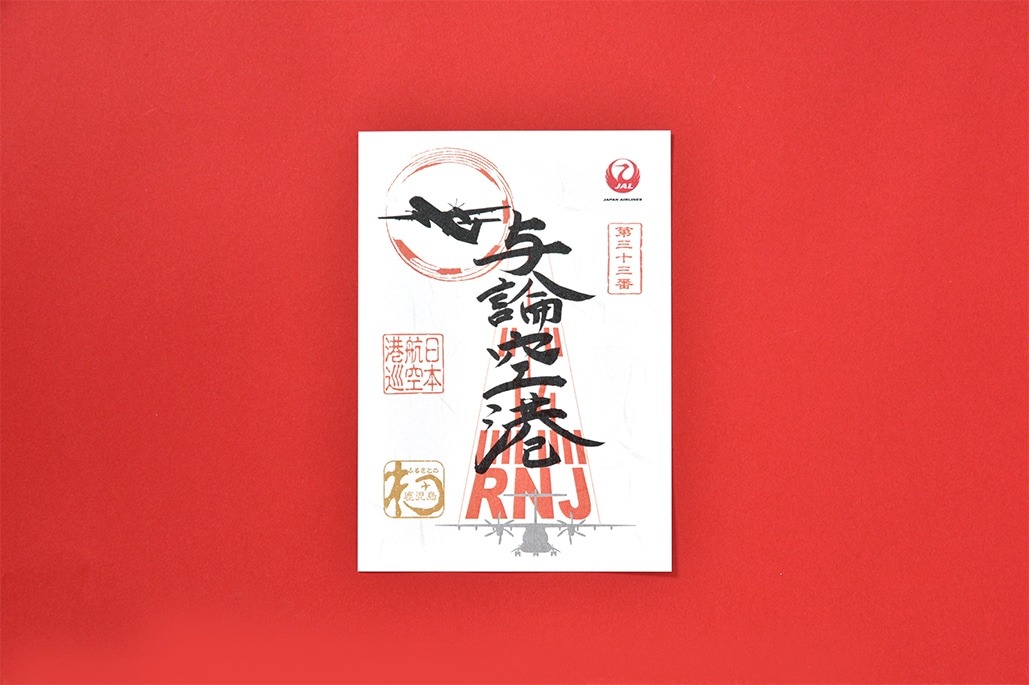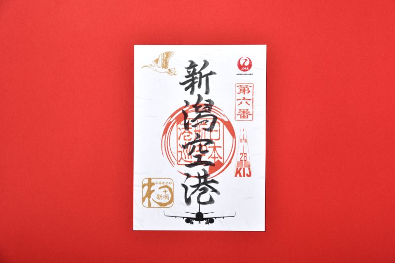 御翔印の真ん中にある空港名は、各県ゆかりのある客室乗務員、整備士、地上職員など JALグループ社員が、実際に筆書きをしたものです。新潟空港は、新潟県湯沢にルーツを持つ客室乗務員が筆を執りました。 それぞれの空港で異なる手書きの味わいをお楽しみください。