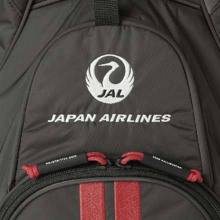 JALらしい、赤い刺繍のステッチは、チャコールとの相性抜群。