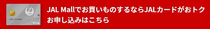 日常のお買い物をJALカードでお支払いいただくと、ご利用金額に応じてショッピングマイルが自動的にたまります。JAL Mallは、マイルが2倍たまる「JALカード特約店」なので100円=2マイル*のショッピングマイルがたまりとてもおトクです!